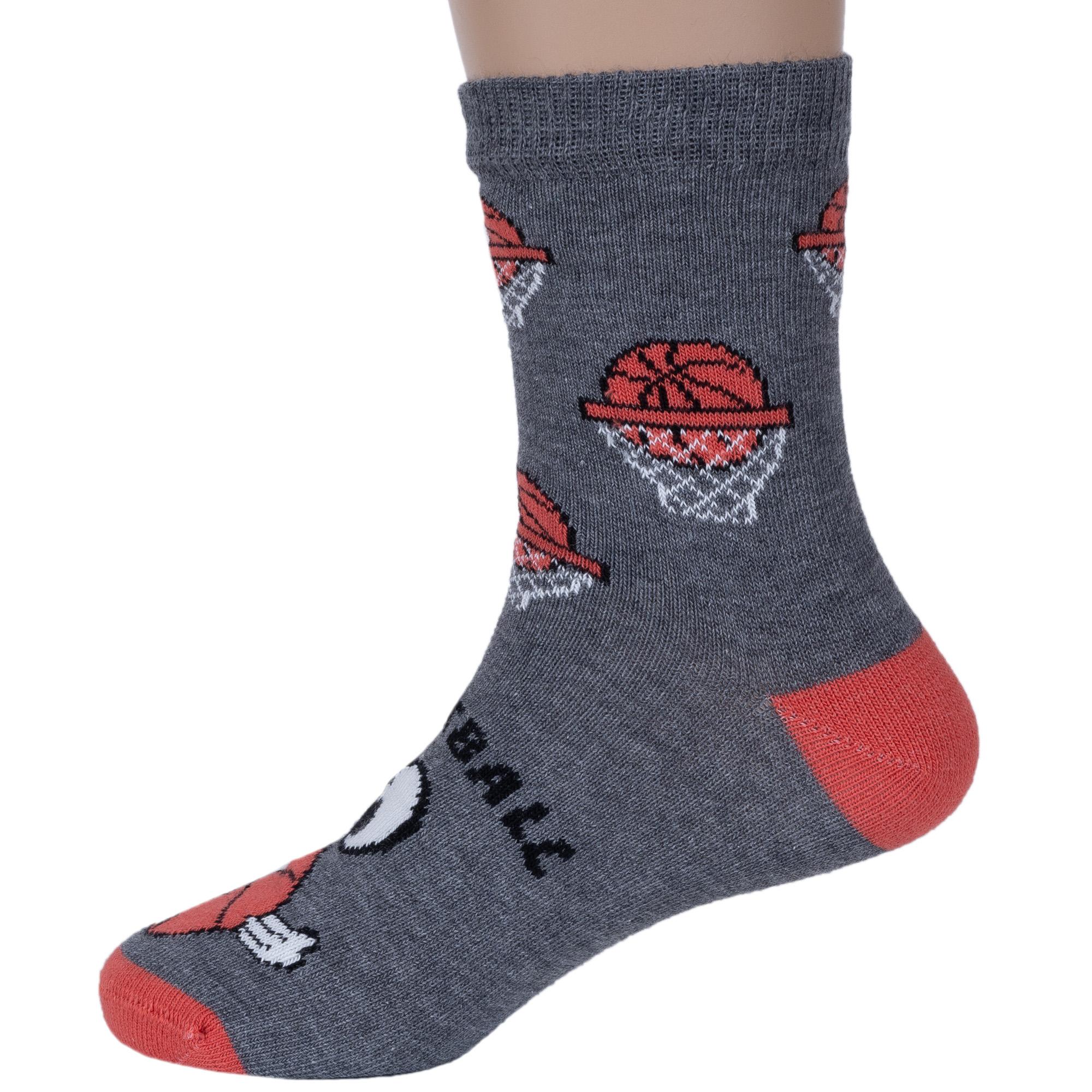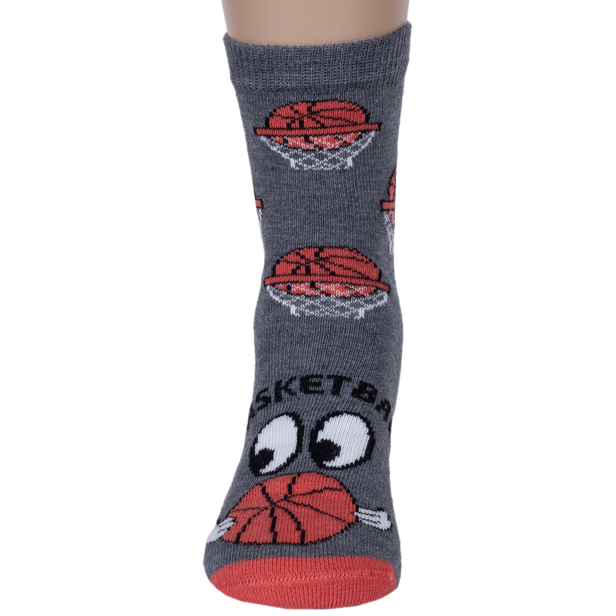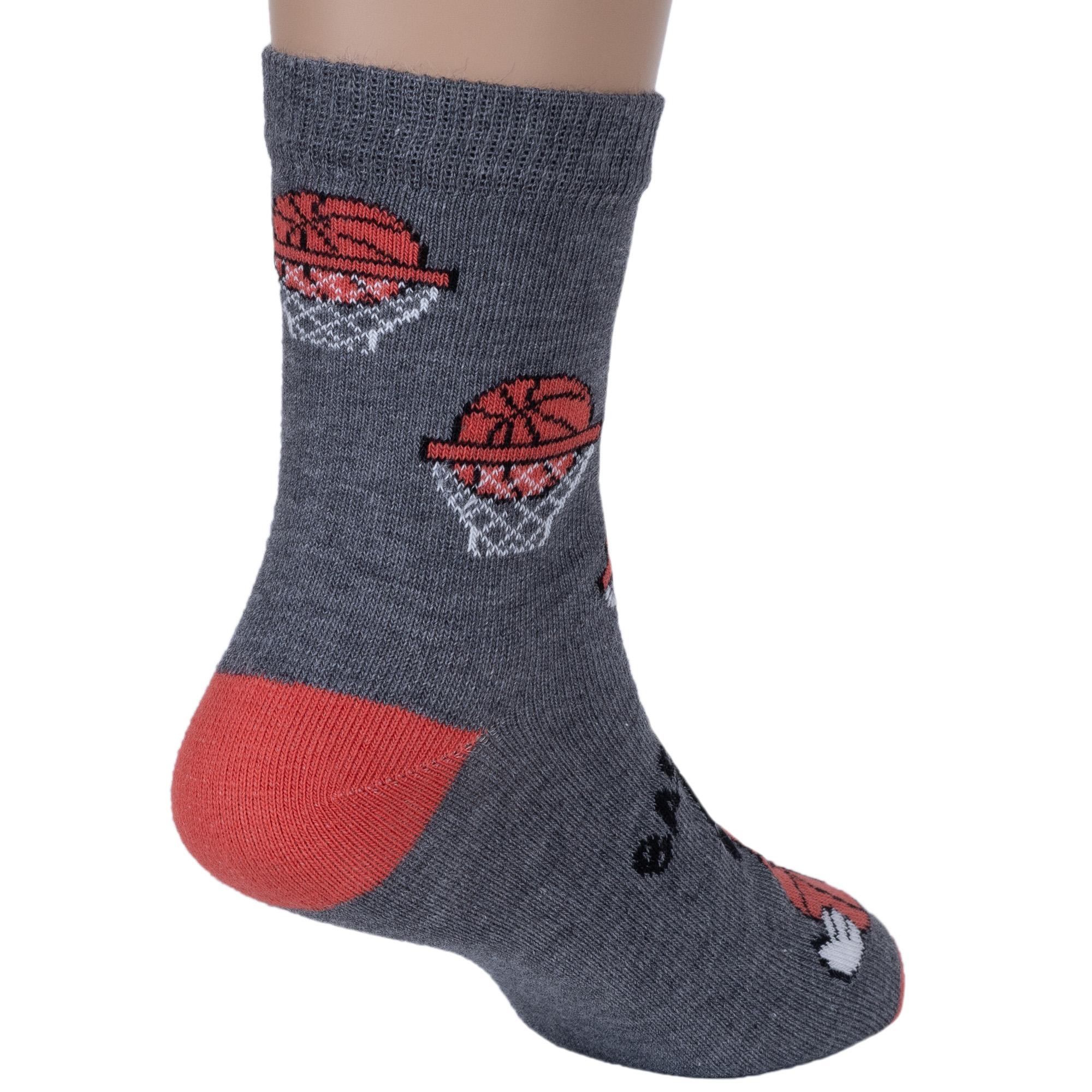 Круглогодичные укороченные детские носки, цвет серый, повседневные, шов кеттельный (бесшовная технология), принт (рисунок): спортивные, игры, с узором, состав: 78% хлопок, 20% полиамид, 2% эластан, арт. Д3-13500. Производитель «ООО Орудьевский трикотаж, Россия» под брендом «Rusocks (орудьевский трикотаж)».