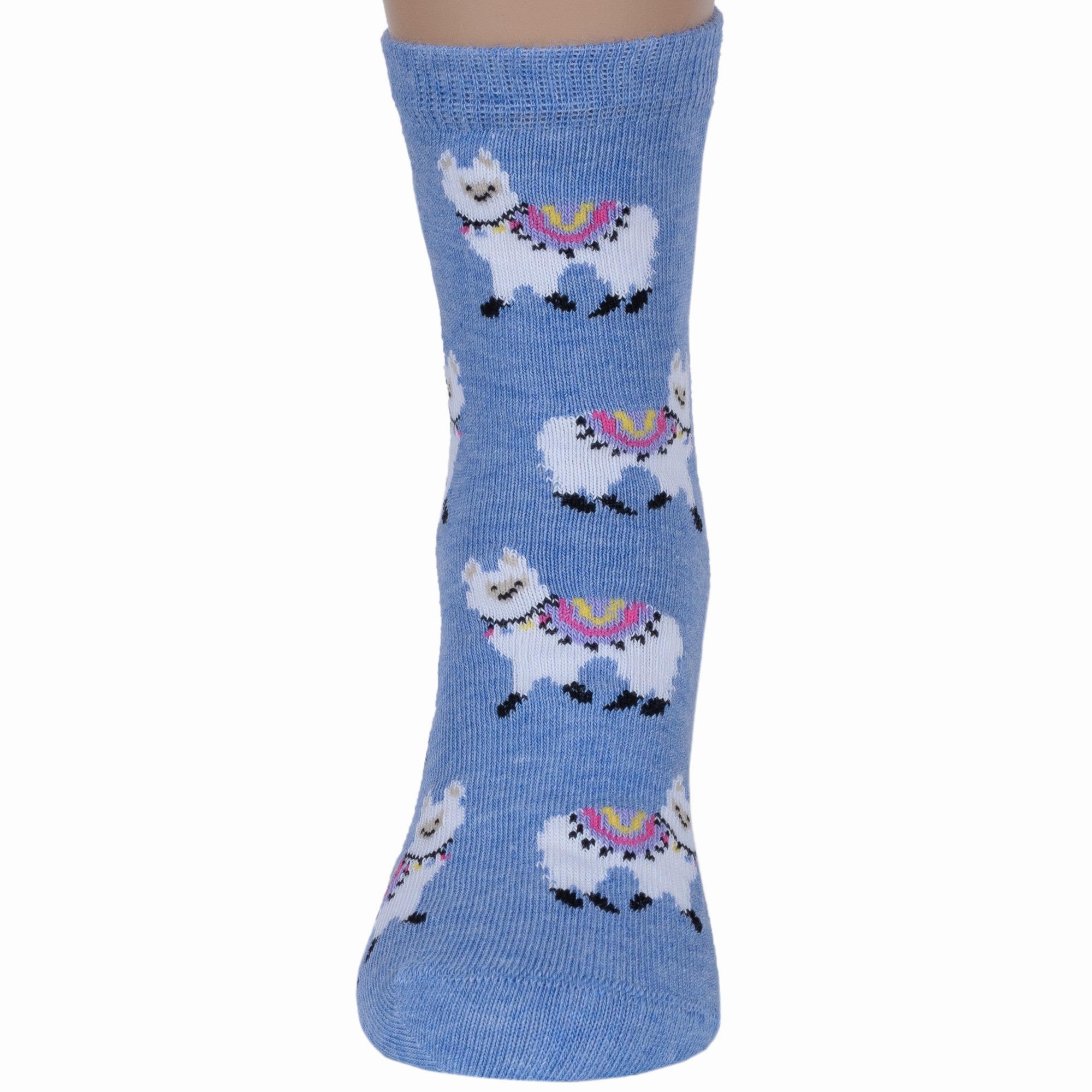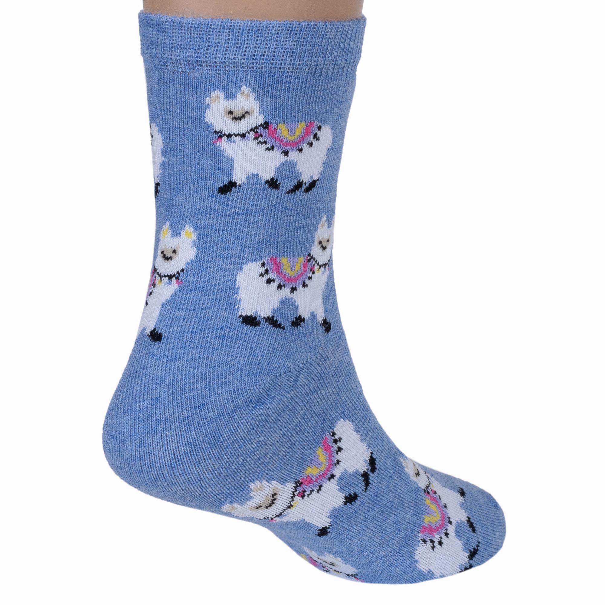 Круглогодичные укороченные детские носки, цвет синий-джинс, повседневные, шов кеттельный (бесшовная технология), принт (рисунок): животные, с узором, состав: 78% хлопок, 20% полиамид, 2% эластан, арт. Д3-13047. Производитель «ООО Орудьевский трикотаж, Россия» под брендом «Rusocks (орудьевский трикотаж)».