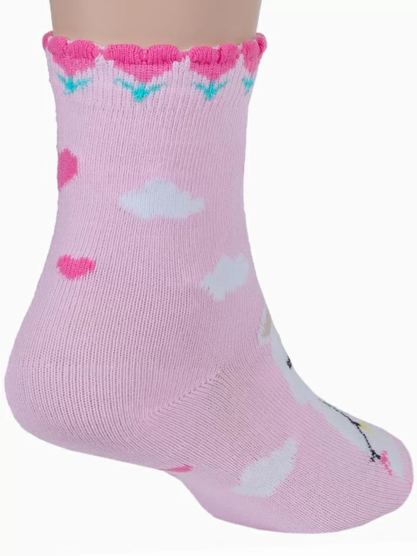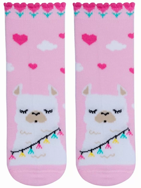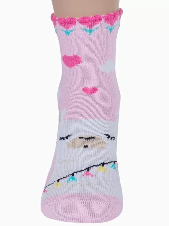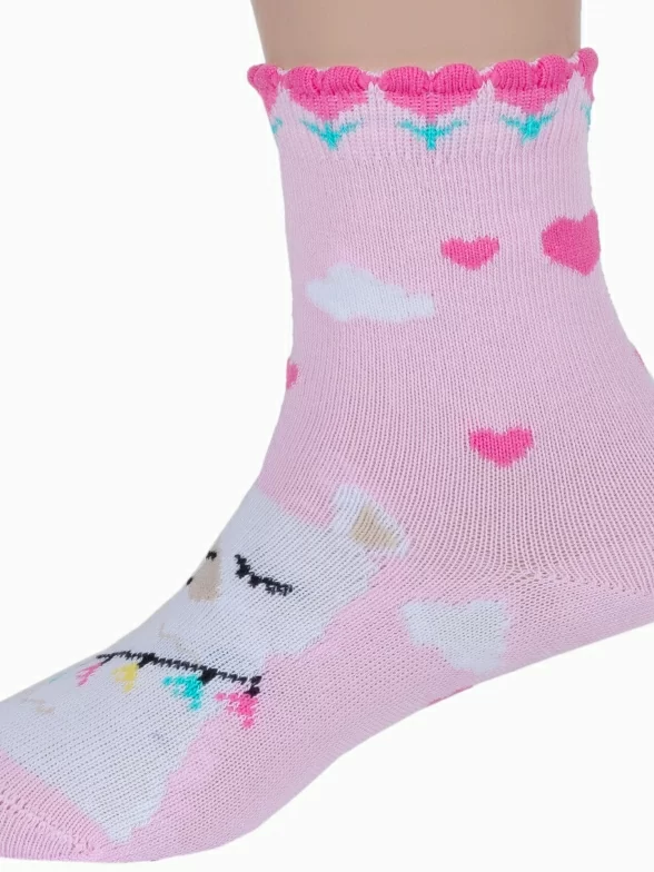 Круглогодичные укороченные детские носки, цвет розовый, повседневные, шов кеттельный (бесшовная технология), принт (рисунок): животные, с узором, состав: 78% хлопок, 20% полиамид, 2% эластан, арт. Д3-13047. Производитель «ООО Орудьевский трикотаж, Россия» под брендом «Rusocks (орудьевский трикотаж)».