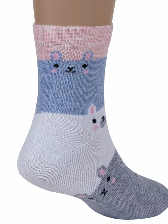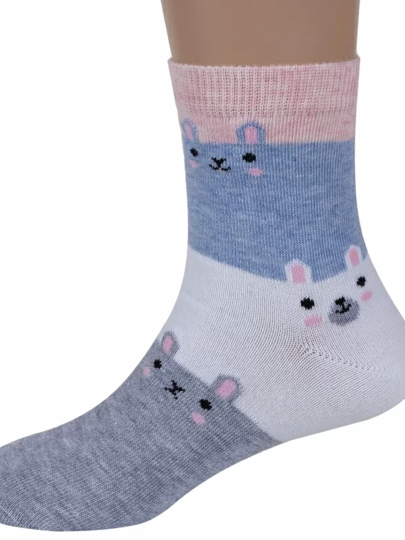 Круглогодичные средней длины детские носки, цвет многоцветные (мультиколор), повседневные, шов кеттельный (бесшовная технология), принт (рисунок): животные, с узором, состав: 78% хлопок, 20% полиамид, 2% эластан, арт. Д-31349. Производитель «ООО Орудьевский трикотаж, Россия» под брендом «Rusocks (орудьевский трикотаж)».