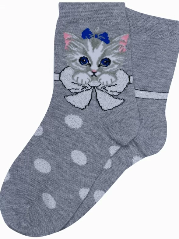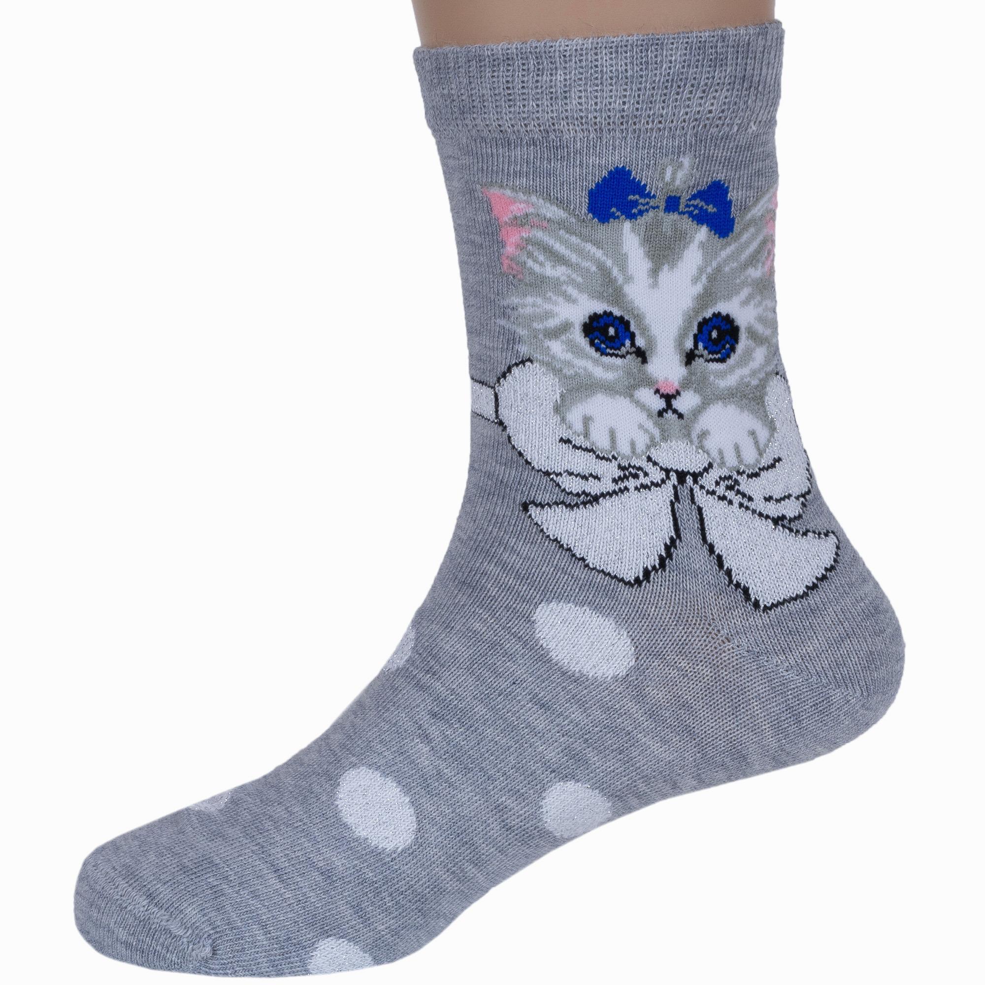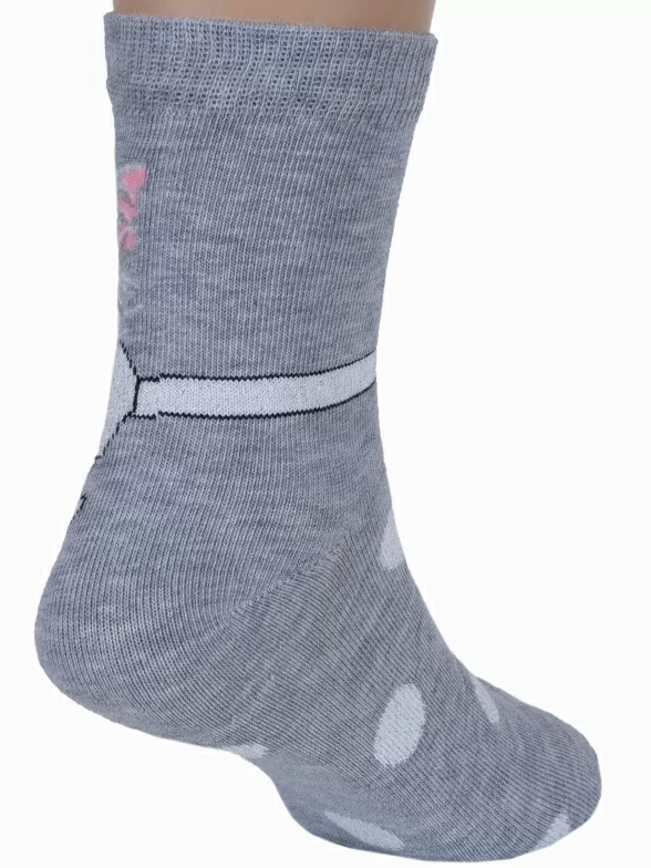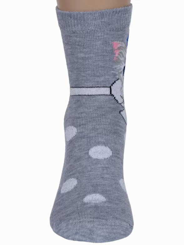 Круглогодичные укороченные детские носки, цвет светло-серый, повседневные, с нескользящей стопой, шов кеттельный (бесшовная технология), принт (рисунок): животные, с узором, состав: 78% хлопок, 20% полиамид, 2% эластан, арт. Д3-13030. Производитель «ООО Орудьевский трикотаж, Россия» под брендом «Rusocks (орудьевский трикотаж)».