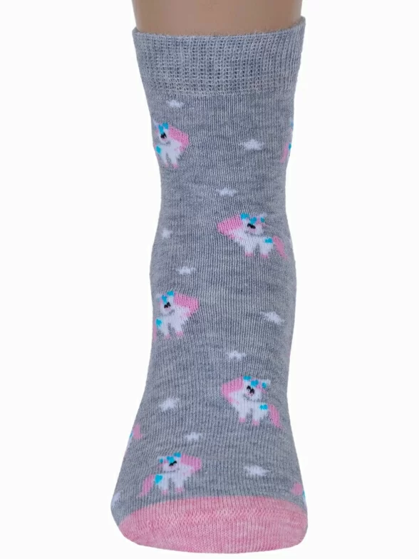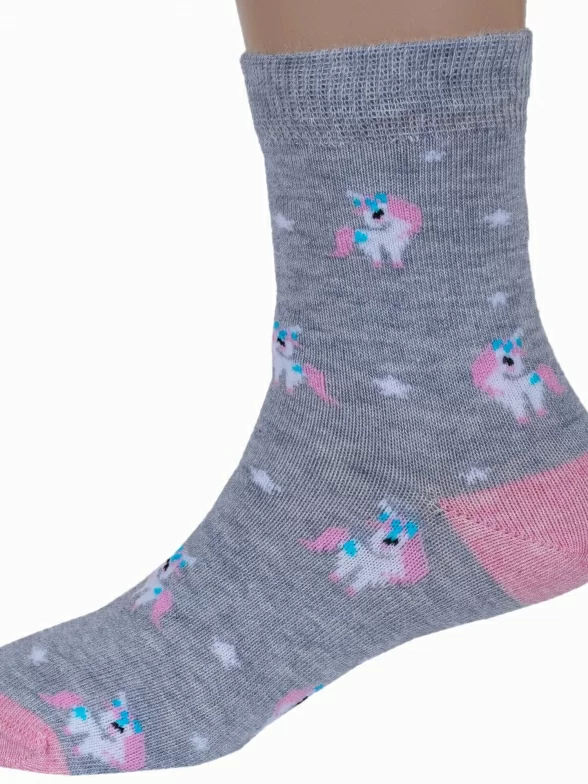 Круглогодичные укороченные детские носки, цвет светло-серый, с нескользящей стопой, повседневные, шов кеттельный (бесшовная технология), принт (рисунок): животные, с узором, состав: 78% хлопок, 20% полиамид, 2% эластан, арт. Д3-13160. Производитель «ООО Орудьевский трикотаж, Россия» под брендом «Rusocks (орудьевский трикотаж)».