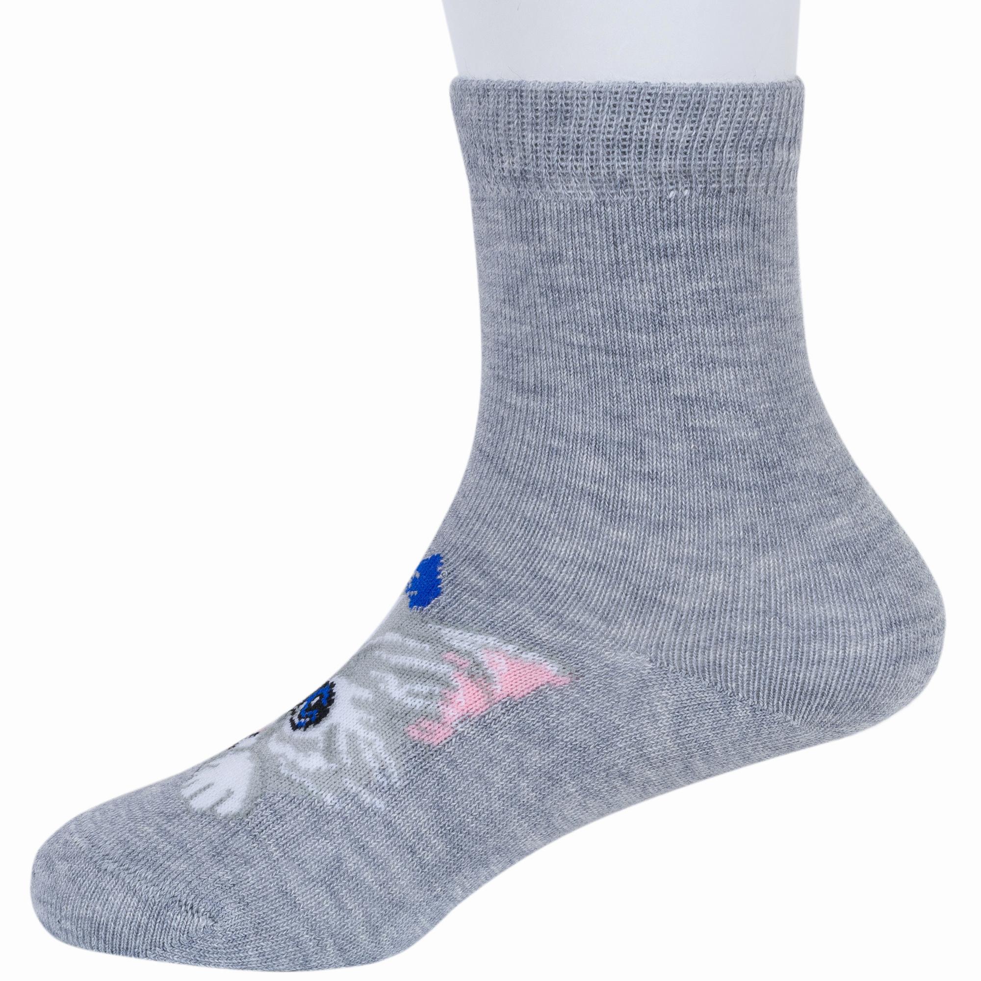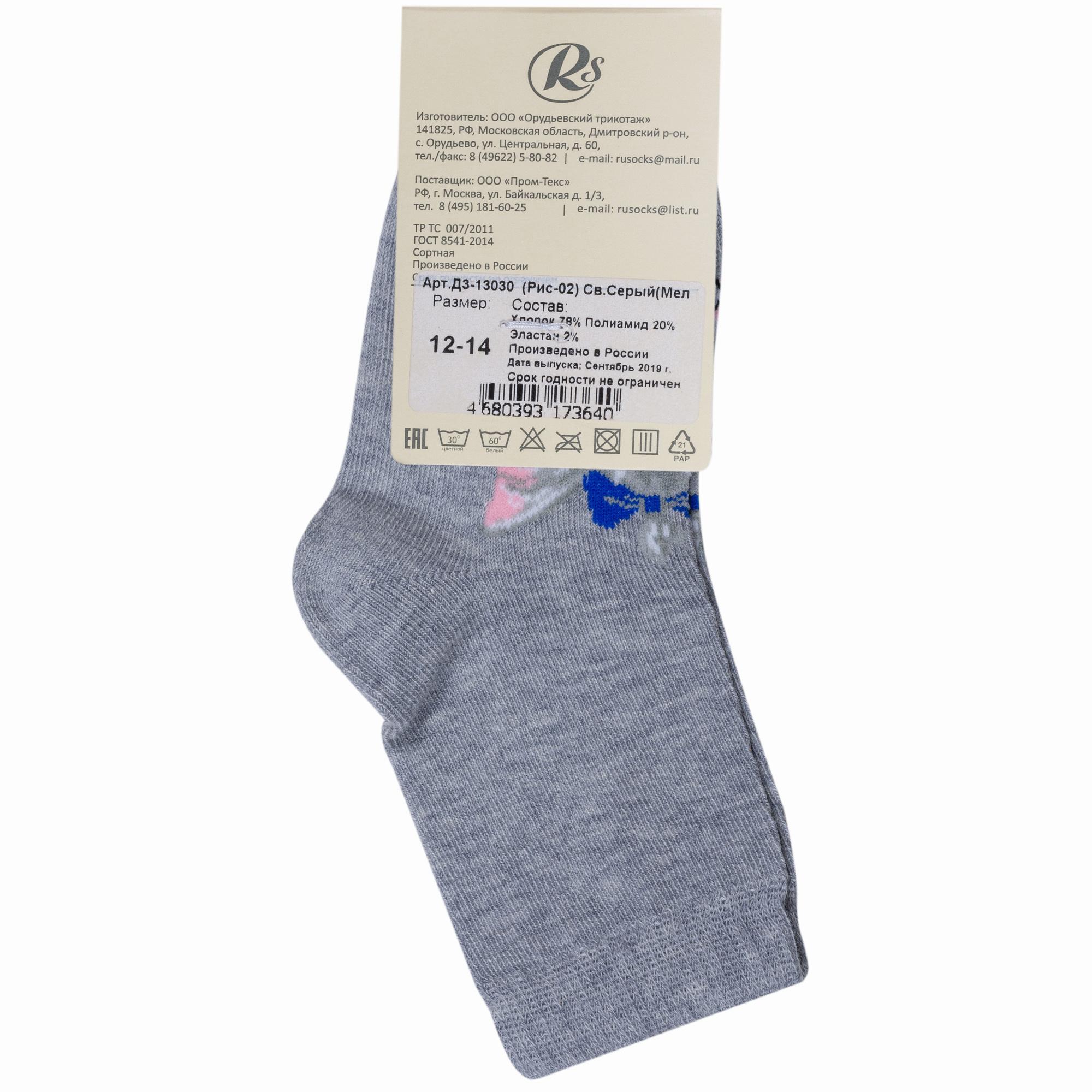 Круглогодичные укороченные детские носки, цвет светло-серый, с нескользящей стопой, повседневные, шов кеттельный (бесшовная технология), принт (рисунок): с узором, животные, состав: 78% хлопок, 20% полиамид, 2% эластан, арт. Д3-13030. Производитель «ООО Орудьевский трикотаж, Россия» под брендом «Rusocks (орудьевский трикотаж)».