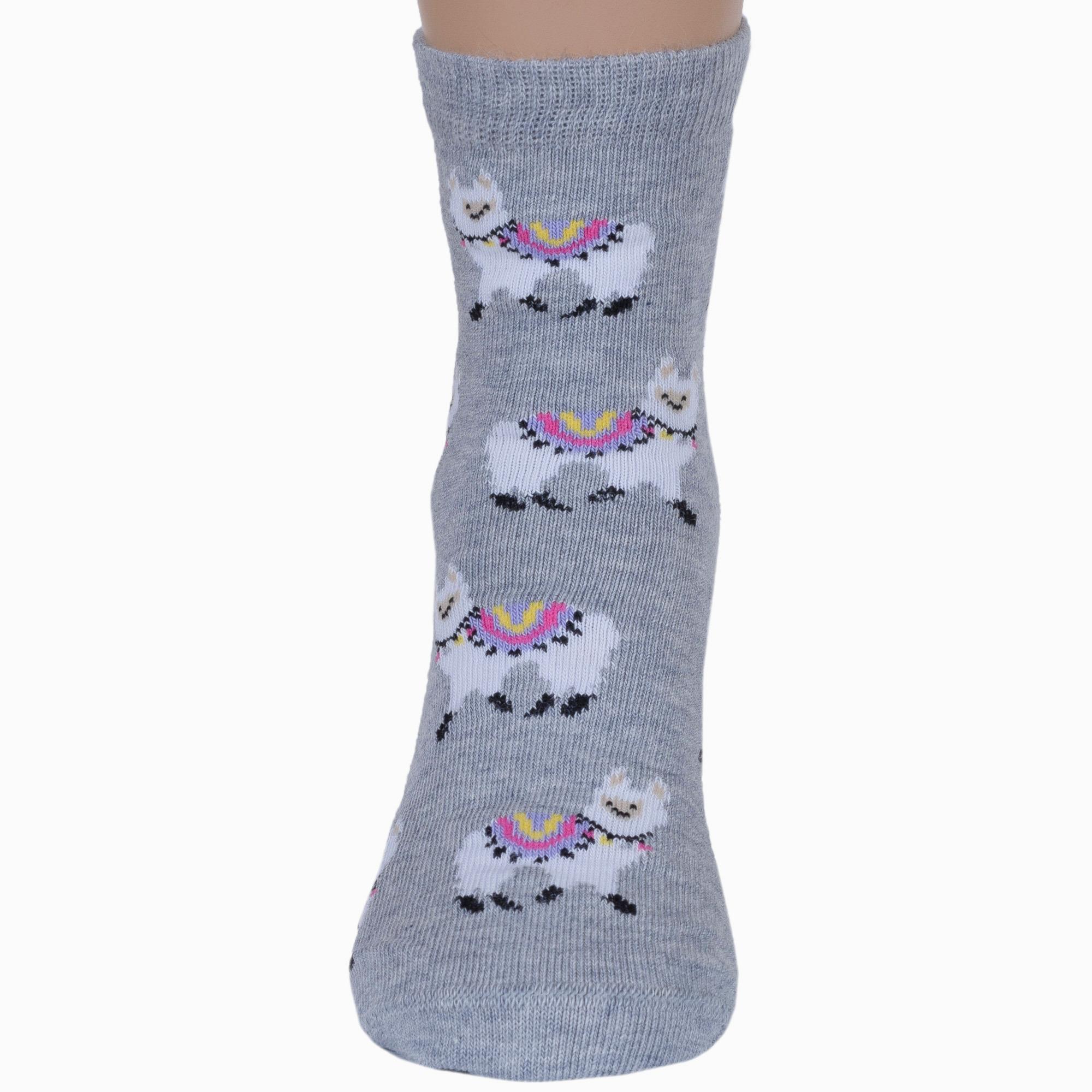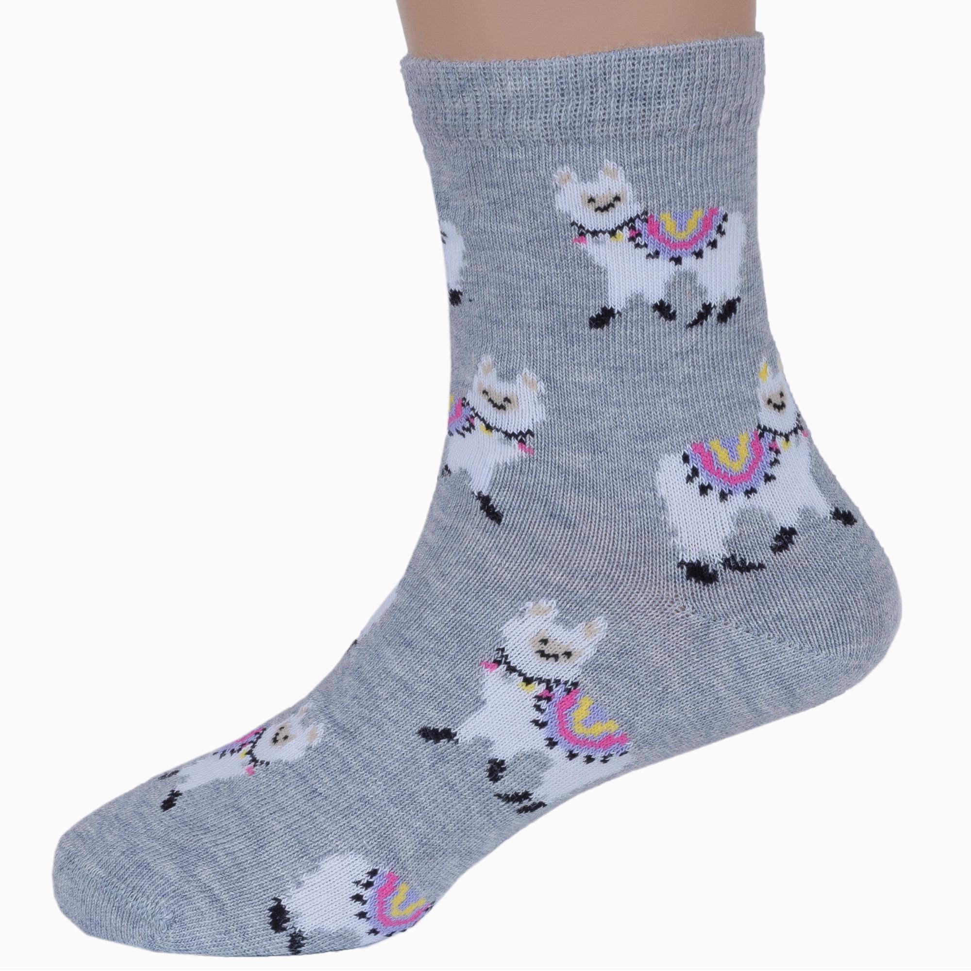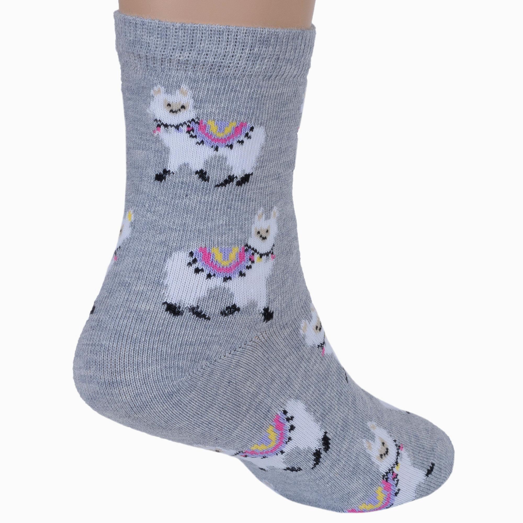 Круглогодичные укороченные детские носки, цвет светло-серый, повседневные, шов кеттельный (бесшовная технология), принт (рисунок): животные, с узором, состав: 78% хлопок, 20% полиамид, 2% эластан, арт. Д3-13047. Производитель «ООО Орудьевский трикотаж, Россия» под брендом «Rusocks (орудьевский трикотаж)».