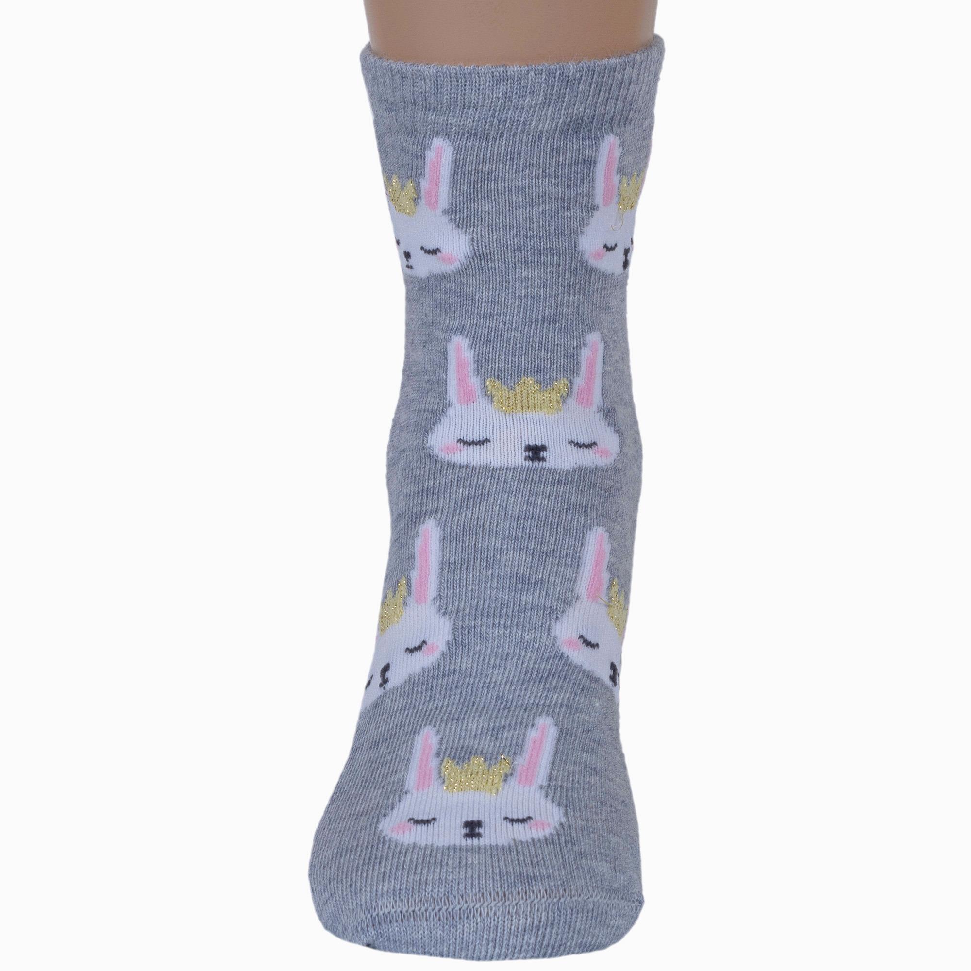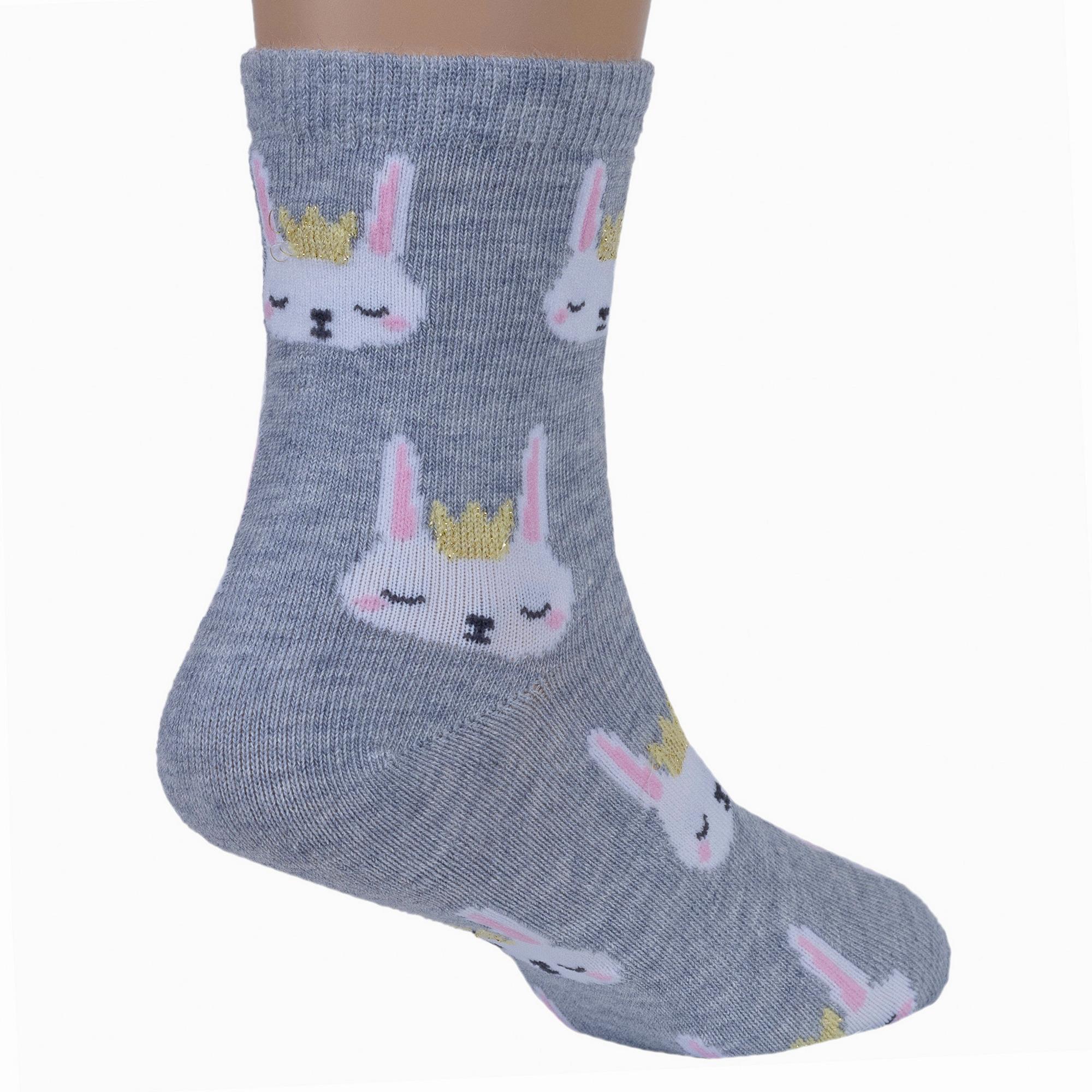 Круглогодичные укороченные детские носки, цвет светло-серый, с нескользящей стопой, повседневные, шов кеттельный (бесшовная технология), принт (рисунок): животные, с узором, состав: 78% хлопок, 20% полиамид, 2% эластан, арт. Д3-13055. Производитель «ООО Орудьевский трикотаж, Россия» под брендом «Rusocks (орудьевский трикотаж)».
