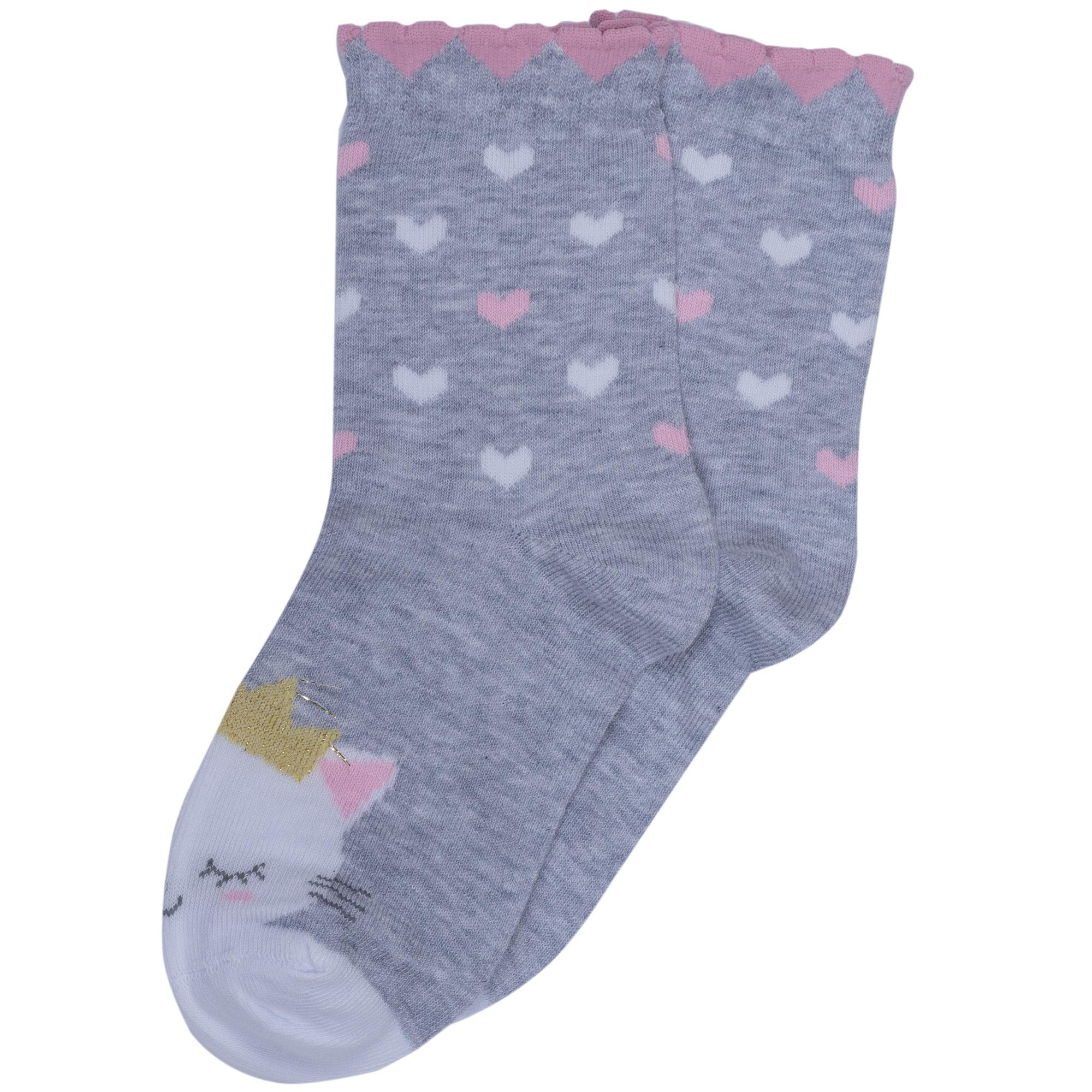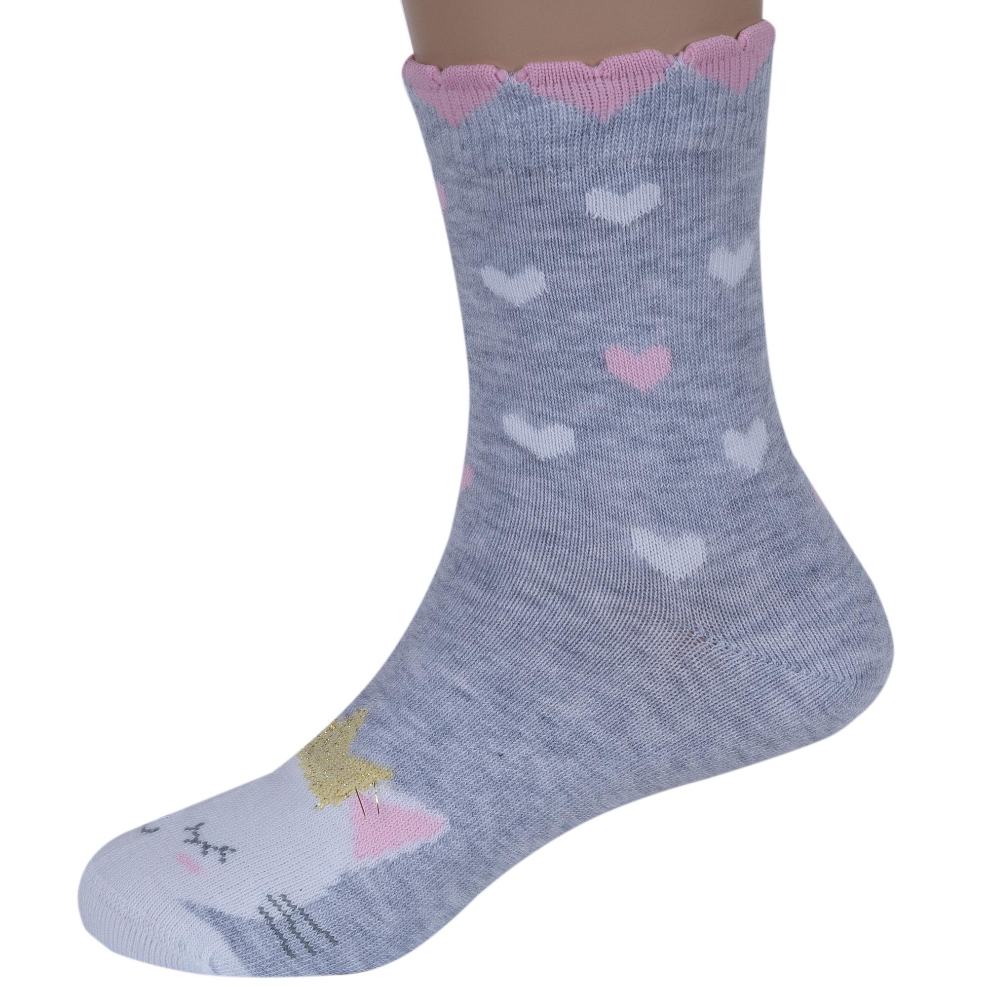 Круглогодичные укороченные детские носки, цвет светло-серый, повседневные, шов кеттельный (бесшовная технология), принт (рисунок): животные, блеск люрекса, с узором, состав: 78% хлопок, 20% полиамид, 2% эластан, арт. Д3-13158. Производитель «ООО Орудьевский трикотаж, Россия» под брендом «Rusocks (орудьевский трикотаж)».