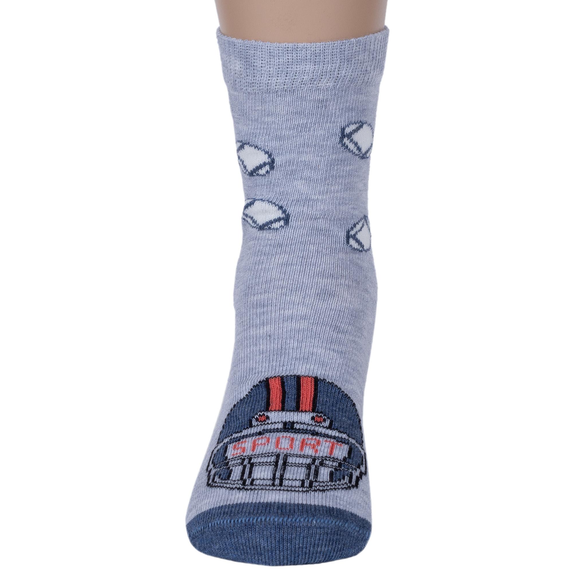 Круглогодичные укороченные детские носки, цвет светло-серый, повседневные, шов кеттельный (бесшовная технология), принт (рисунок): спортивные, игры, с узором, состав: 78% хлопок, 20% полиамид, 2% эластан, арт. Д3-13500. Производитель «ООО Орудьевский трикотаж, Россия» под брендом «Rusocks (орудьевский трикотаж)».