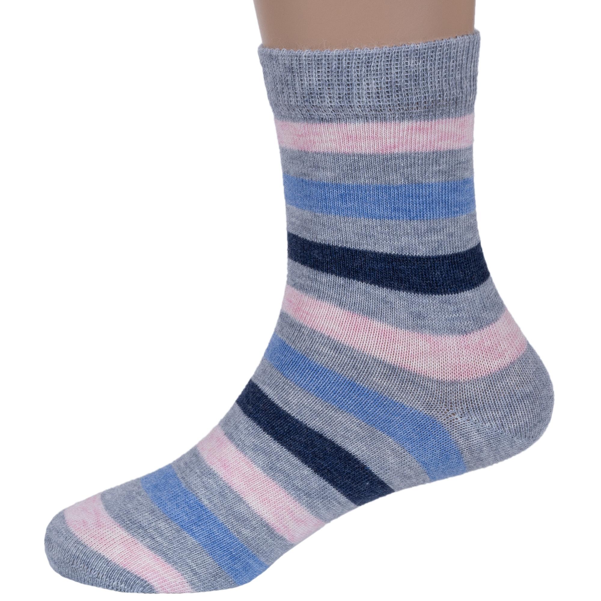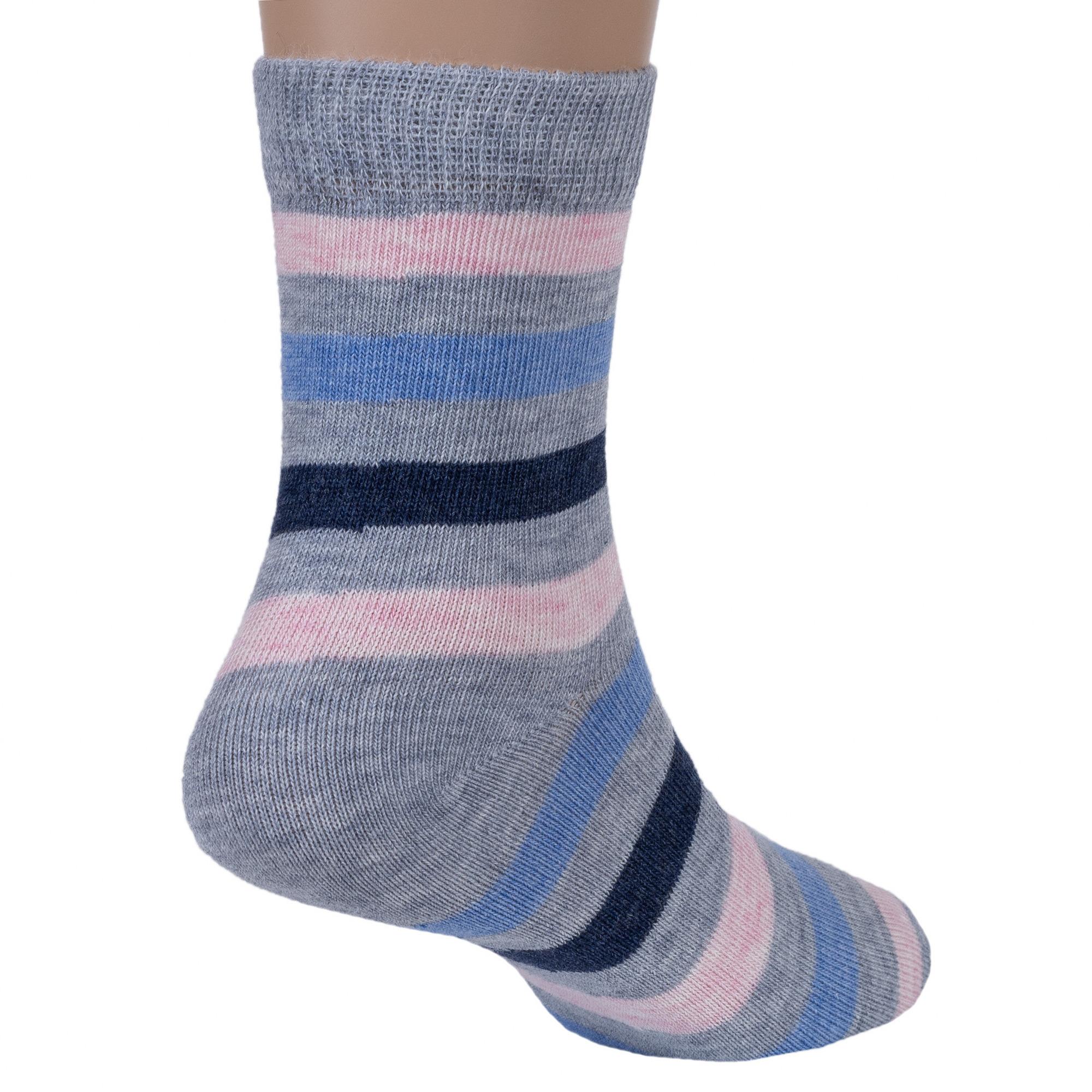 Круглогодичные укороченные детские носки, цвет светло-серый, с нескользящей стопой, повседневные, шов кеттельный (бесшовная технология), принт (рисунок): полоски, с узором, состав: 78% хлопок, 20% полиамид, 2% эластан, арт. Д3-13160. Производитель «ООО Орудьевский трикотаж, Россия» под брендом «Rusocks (орудьевский трикотаж)».