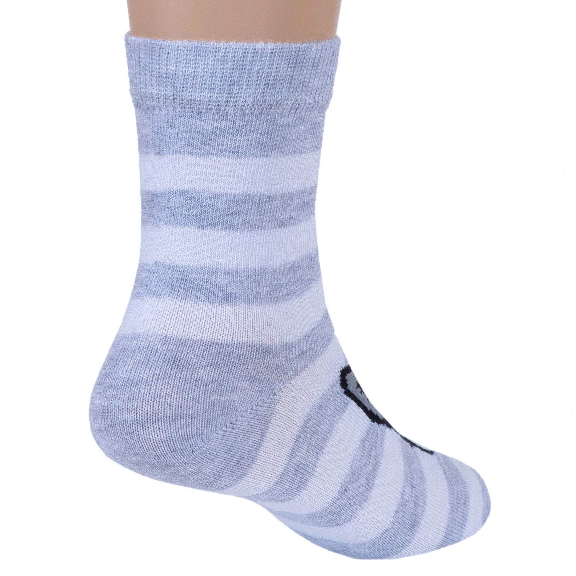 Круглогодичные укороченные детские носки, цвет светло-серый, с нескользящей стопой, повседневные, шов кеттельный (бесшовная технология), принт (рисунок): животные, с узором, состав: 78% хлопок, 20% полиамид, 2% эластан, арт. Д3-13156. Производитель «ООО Орудьевский трикотаж, Россия» под брендом «Rusocks (орудьевский трикотаж)».