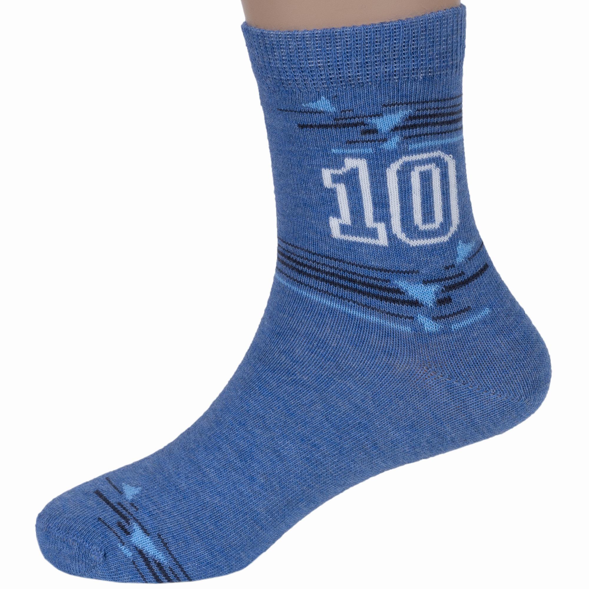 Круглогодичные укороченные детские носки, цвет синий-джинс, повседневные, шов кеттельный (бесшовная технология), принт (рисунок): спортивные, с узором, состав: 78% хлопок, 20% полиамид, 2% эластан, арт. Д3-13499. Производитель «ООО Орудьевский трикотаж, Россия» под брендом «Rusocks (орудьевский трикотаж)».