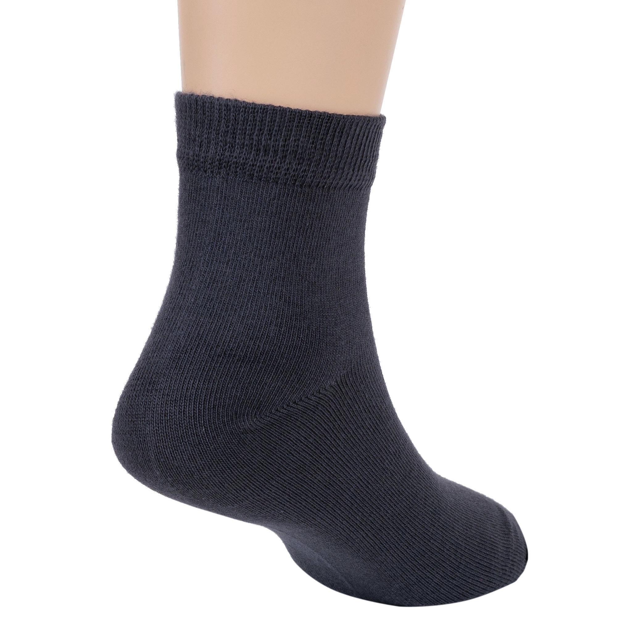 Круглогодичные или летние укороченные детские носки, цвет темно-серый, классические, шов кеттельный (бесшовная технология), принт (рисунок): однотонный, без рисунков/узоров, состав: 87% хлопок, 10% полиамид, 3% эластан, арт. Д-3135. Производитель «ООО Орудьевский трикотаж, Россия» под брендом «Rusocks (орудьевский трикотаж)».