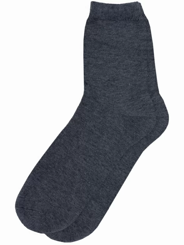 Круглогодичные укороченные детские носки, цвет темно-серый, классические, шов кеттельный (бесшовная технология), принт (рисунок): однотонный, без рисунков/узоров, состав: 78% хлопок, 20% полиамид, 2% эластан, арт. Д3-13039. Производитель «ООО Орудьевский трикотаж, Россия» под брендом «Rusocks (орудьевский трикотаж)».