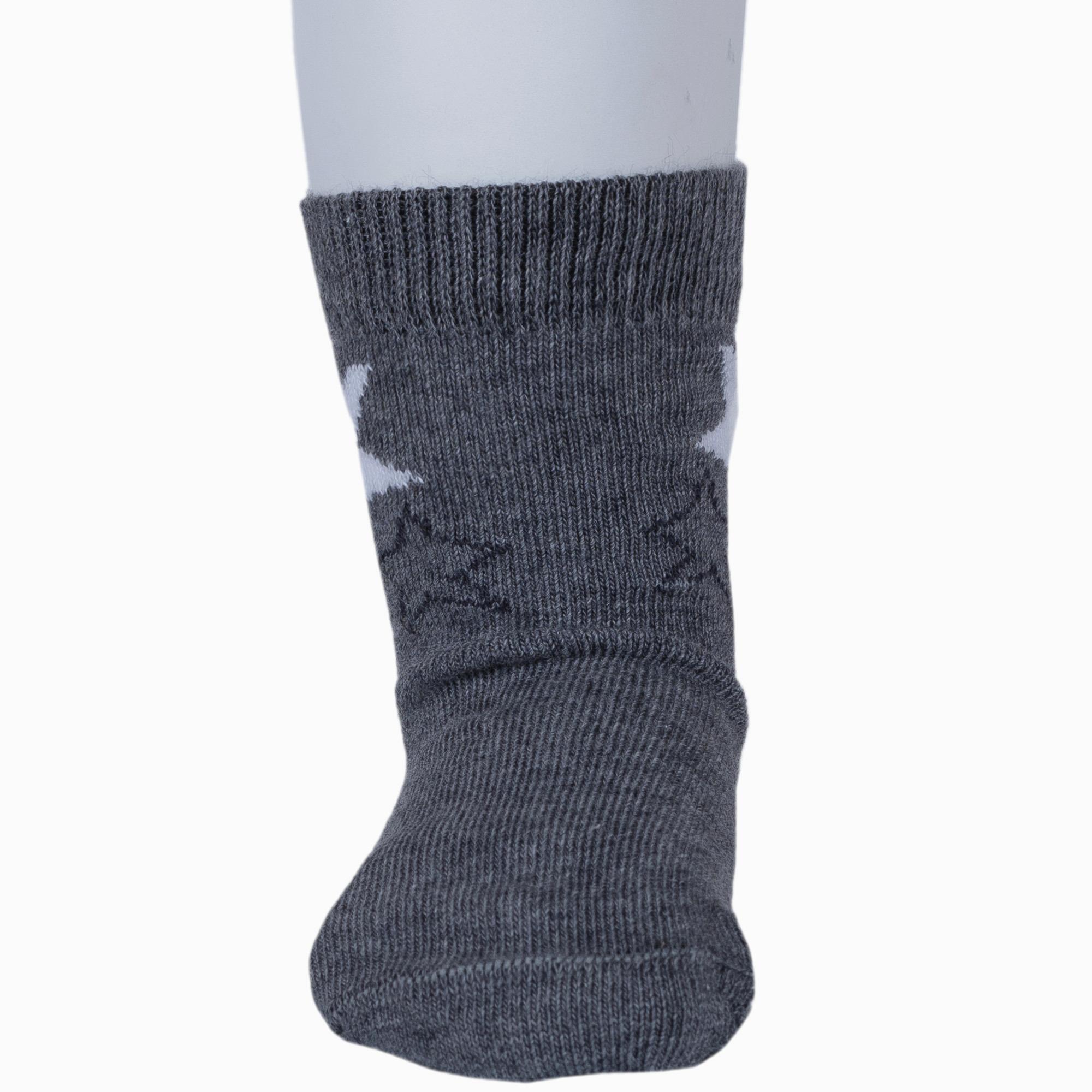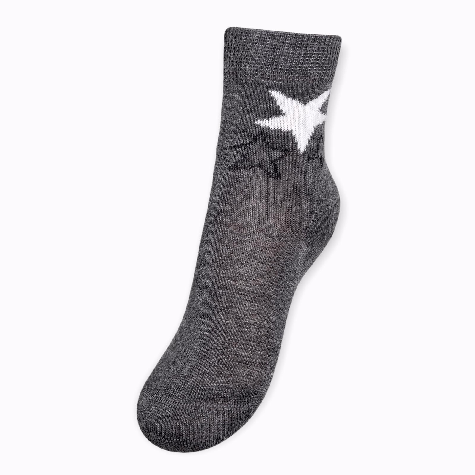 Круглогодичные укороченные детские носки, цвет темно-серый, повседневные, шов кеттельный (бесшовная технология), принт (рисунок): звезды / небо, с узором, состав: 78% хлопок, 20% полиамид, 2% эластан, арт. Д3-13790. Производитель «ООО Орудьевский трикотаж, Россия» под брендом «Rusocks (орудьевский трикотаж)».