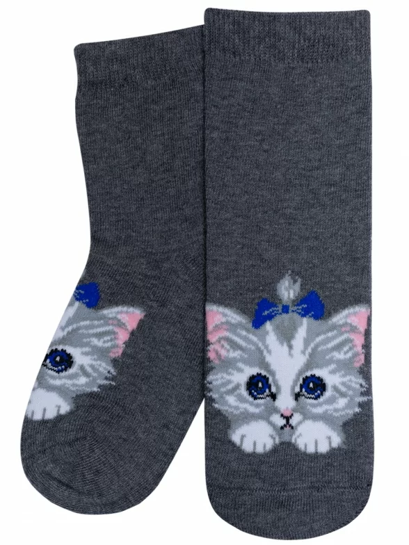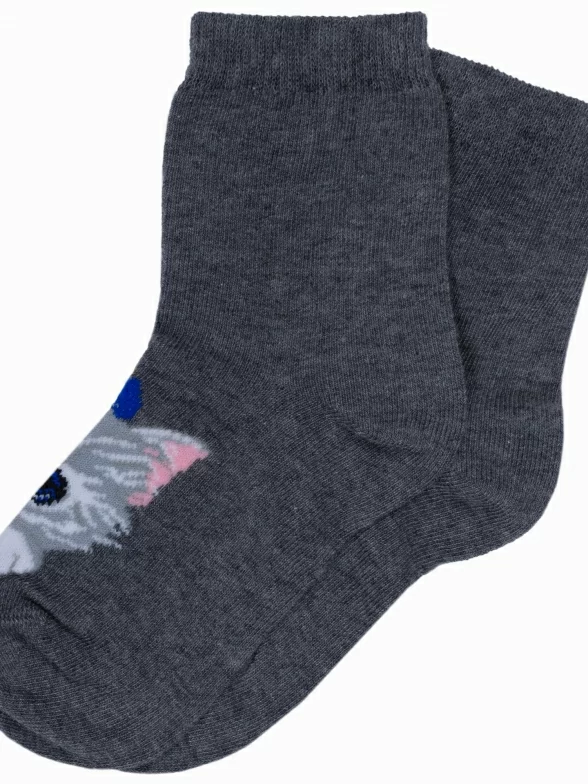 Круглогодичные укороченные детские носки, цвет темно-серый, повседневные, с нескользящей стопой, шов кеттельный (бесшовная технология), принт (рисунок): животные, с узором, состав: 78% хлопок, 20% полиамид, 2% эластан, арт. Д3-13030. Производитель «ООО Орудьевский трикотаж, Россия» под брендом «Rusocks (орудьевский трикотаж)».