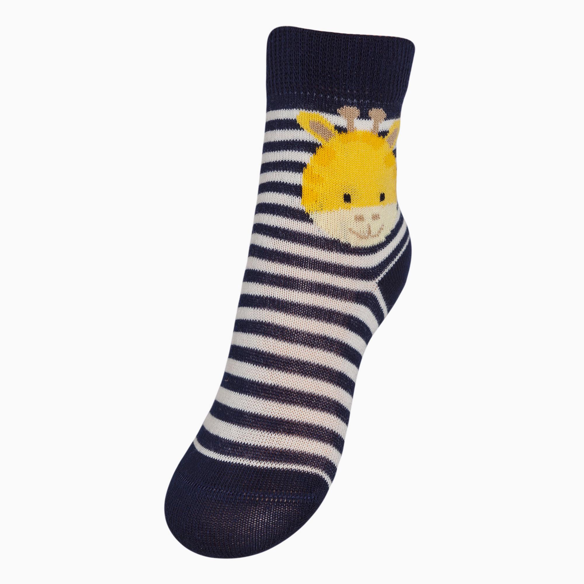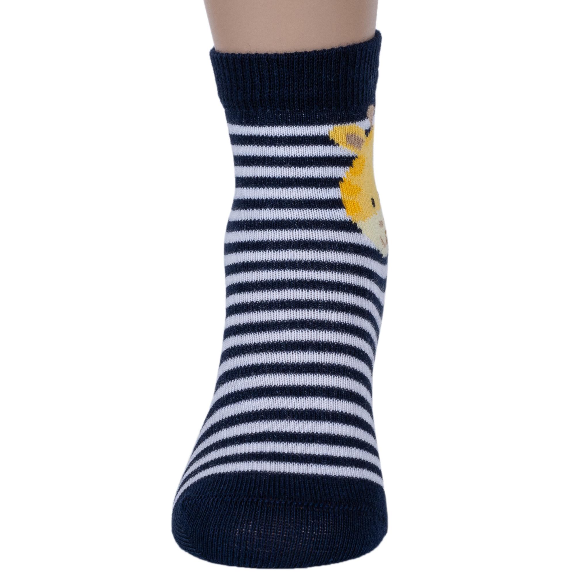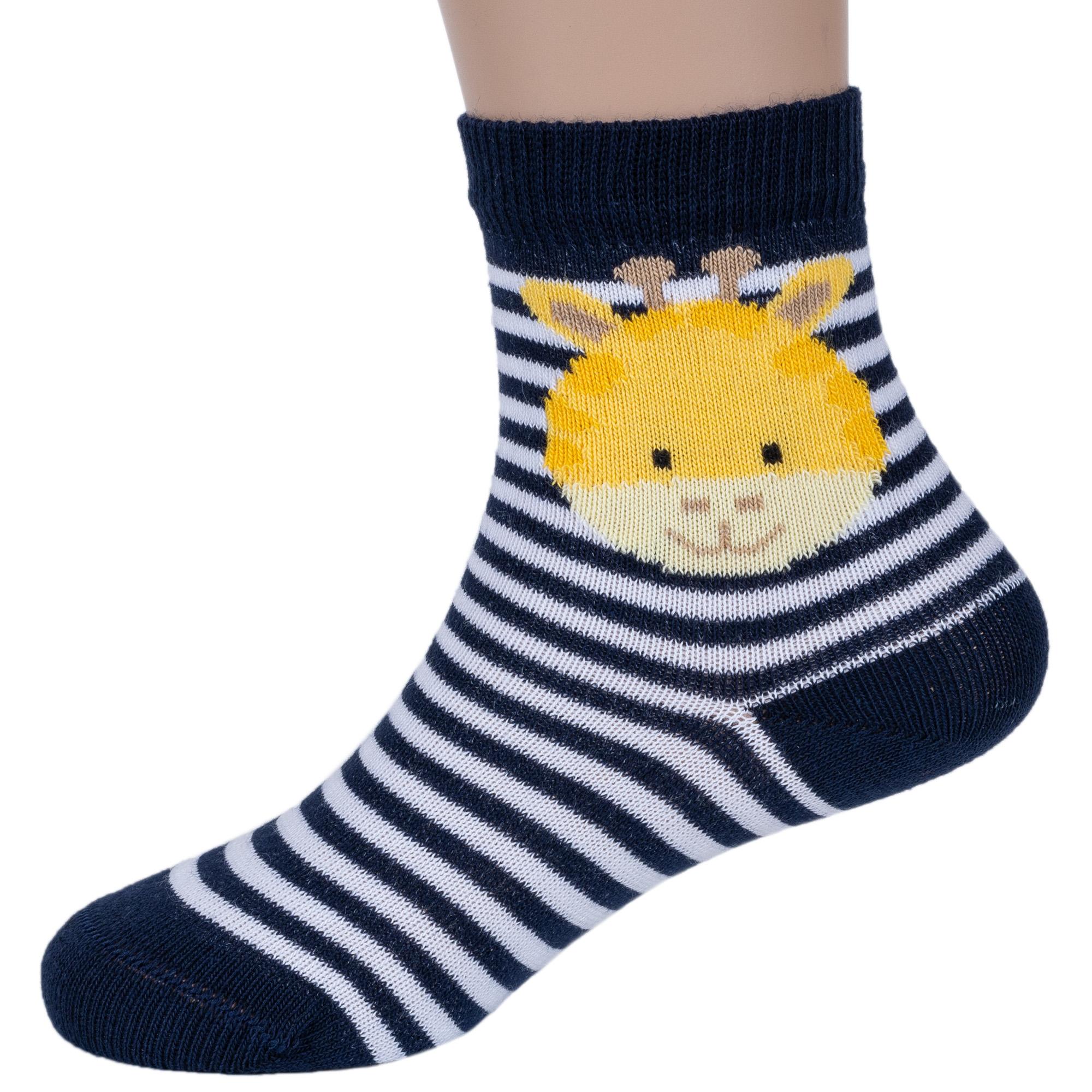 Круглогодичные укороченные детские носки, цвет темно-синий, повседневные, шов кеттельный (бесшовная технология), принт (рисунок): крупные контрастные рисунки, животные, с узором, состав: 78% хлопок, 20% полиамид, 2% эластан, арт. Д3-13788. Производитель «ООО Орудьевский трикотаж, Россия» под брендом «Rusocks (орудьевский трикотаж)».