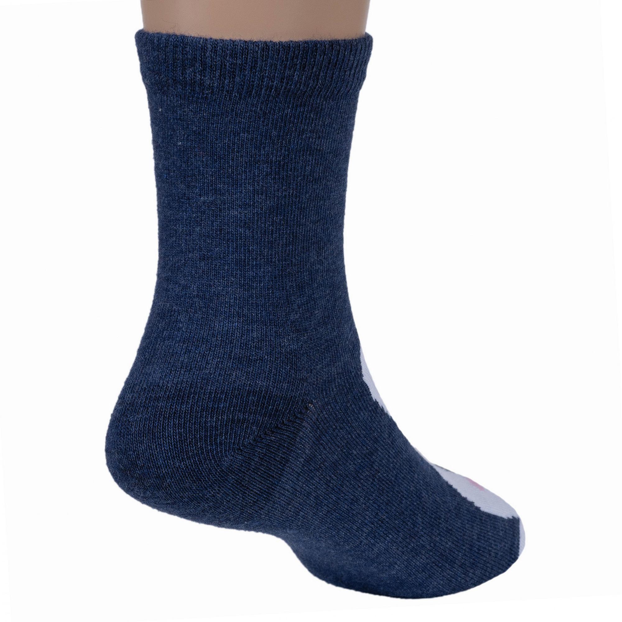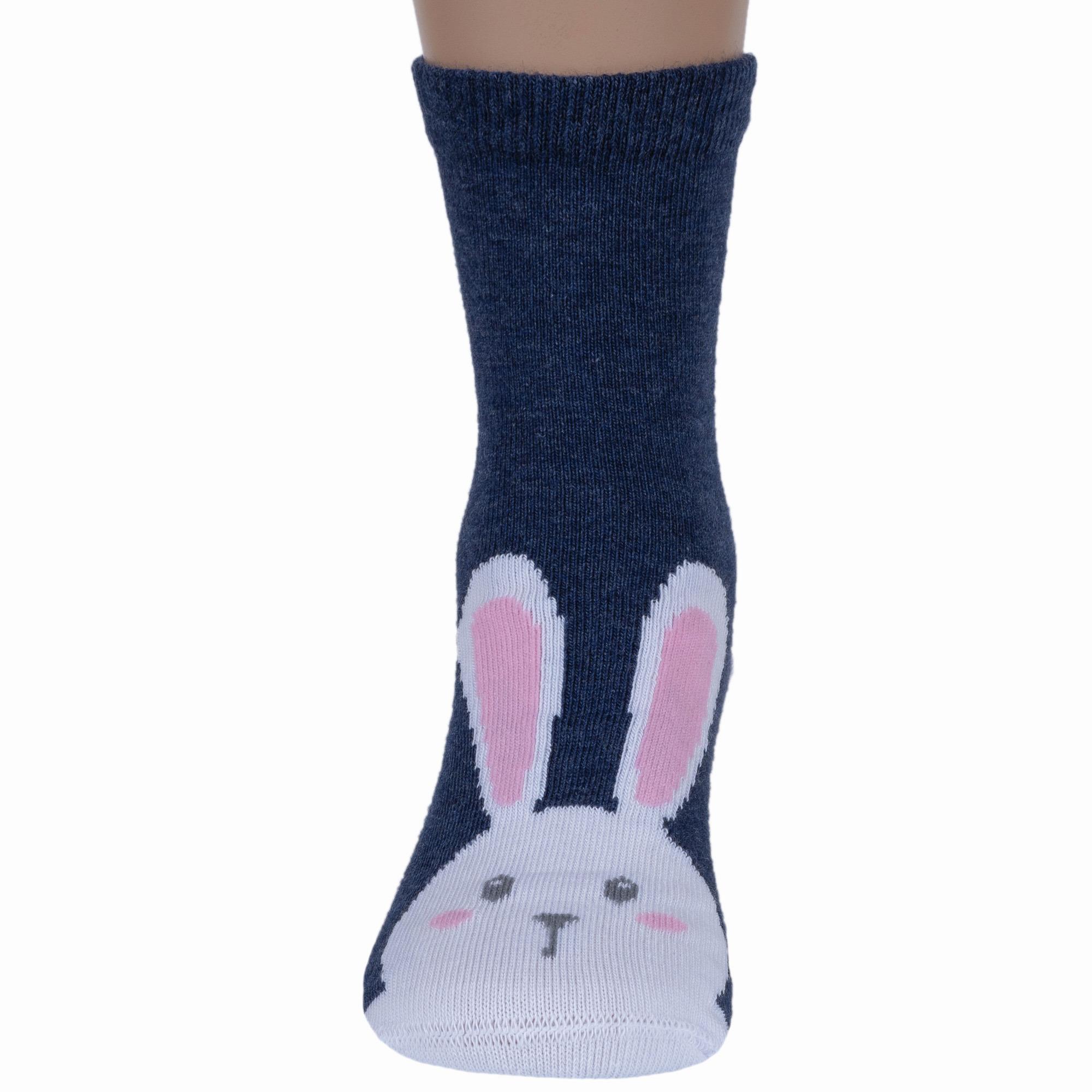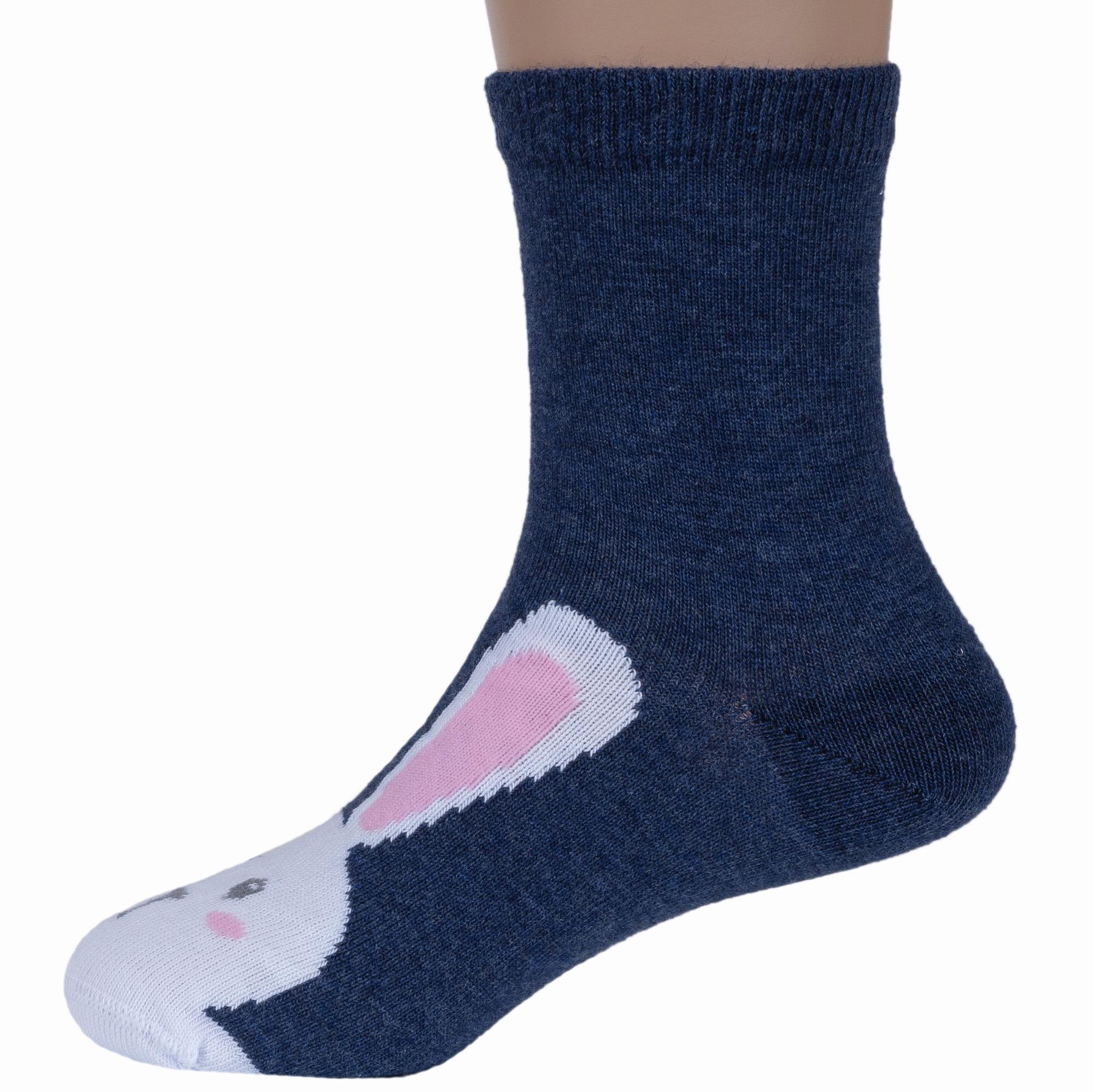 Круглогодичные укороченные детские носки, цвет темно-синий, с нескользящей стопой, повседневные, шов кеттельный (бесшовная технология), принт (рисунок): животные, с узором, состав: 78% хлопок, 20% полиамид, 2% эластан, арт. Д3-13055. Производитель «ООО Орудьевский трикотаж, Россия» под брендом «Rusocks (орудьевский трикотаж)».