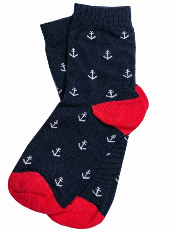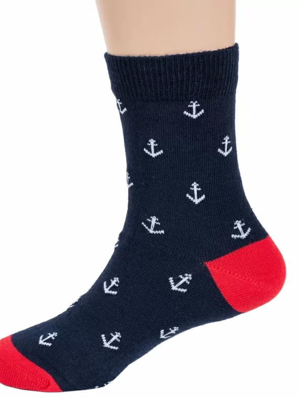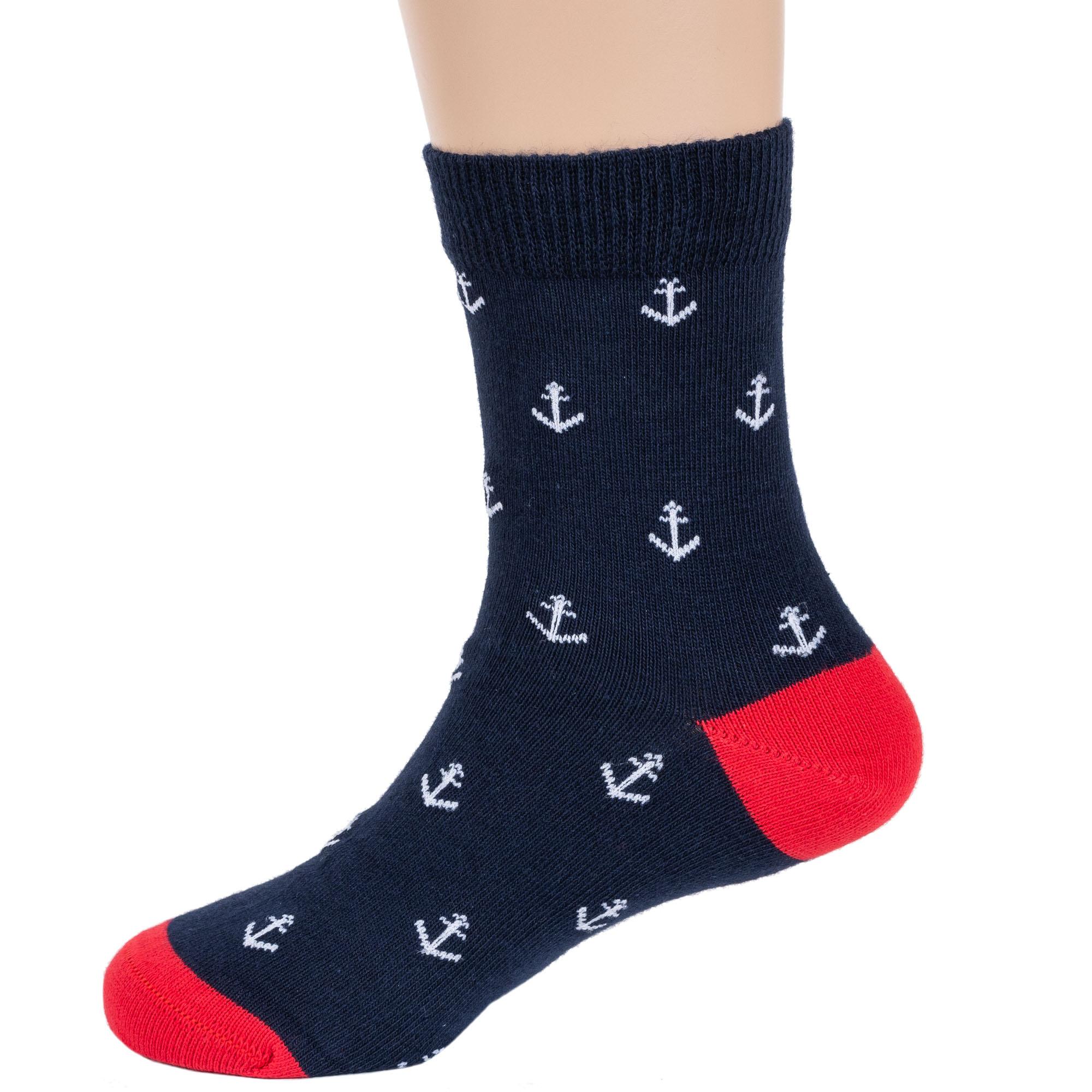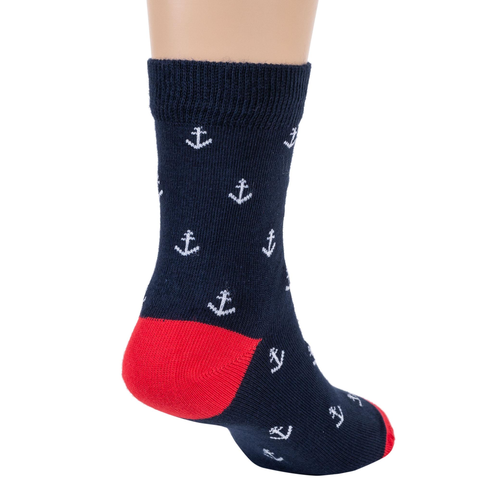 Круглогодичные укороченные детские носки, цвет темно-синий, повседневные, шов кеттельный (бесшовная технология), принт (рисунок): море, с узором, состав: 78% хлопок, 20% полиамид, 2% эластан, арт. Д-43. Производитель «ООО Орудьевский трикотаж, Россия» под брендом «Rusocks (орудьевский трикотаж)».