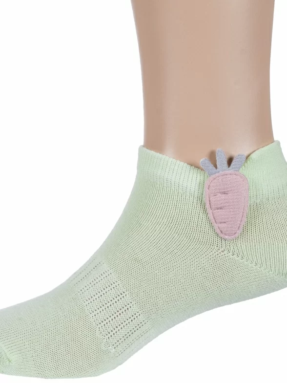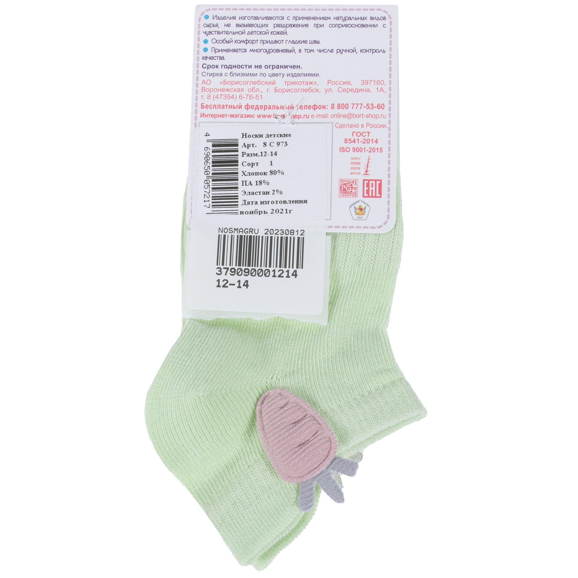 Круглогодичные короткие детские носки, цвет салатовый, необычные, повседневные, шов обычный (не бесшовные), принт (рисунок): еда и напитки, однотонный, состав: 80% хлопок, 18% полиамид, 2% эластан, арт. 8С973. Производитель «АО Борисоглебский трикотаж, Воронежская обл, Россия» под брендом «Борисоглебский трикотаж».