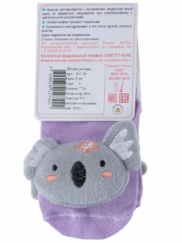 Детские носки с игрушкой "Борисоглебский трикотаж", 8С20, СИРЕНЕВЫЕ