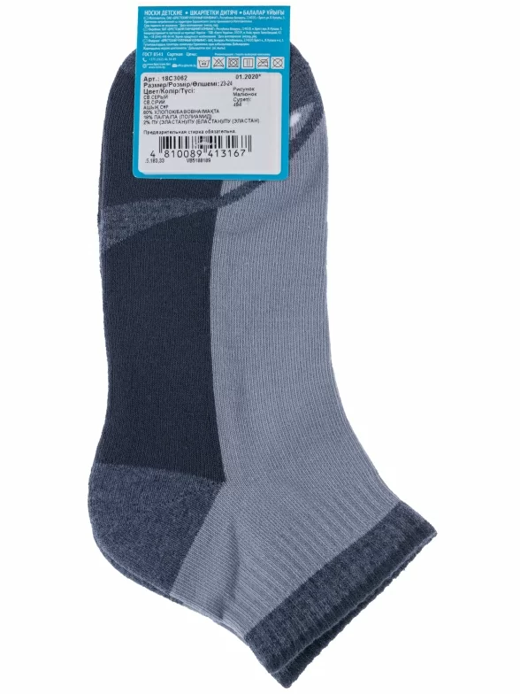 Детские носки с махровым следом от Бресткого Чулочного Комбината связаны из пряжи на основе хлопка. Модель украшена принтом в виде ассиметричных деталей.