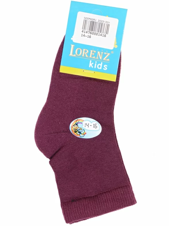 Межсезонные укороченные детские носки, цвет бордовый, с махровым следом, классические, состав: 90% хлопок, 7% полиамид, 3% эластан (лайкра), арт. Л7. Производитель «ИП Мурзаков В.А., Ставропольский край, Россия» под брендом «Lorenzline».