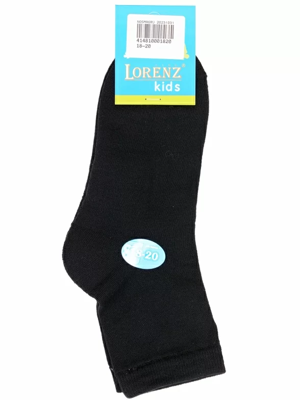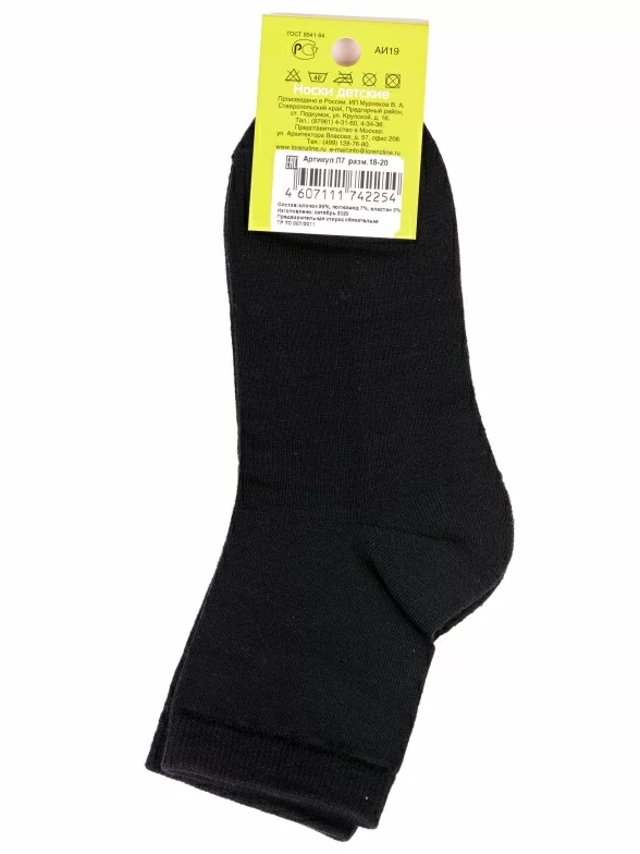 Межсезонные укороченные детские носки, цвет черный, с махровым следом, классические, состав: 90% хлопок, 7% полиамид, 3% эластан (лайкра), арт. Л7. Производитель «ИП Мурзаков В.А., Ставропольский край, Россия» под брендом «Lorenzline».