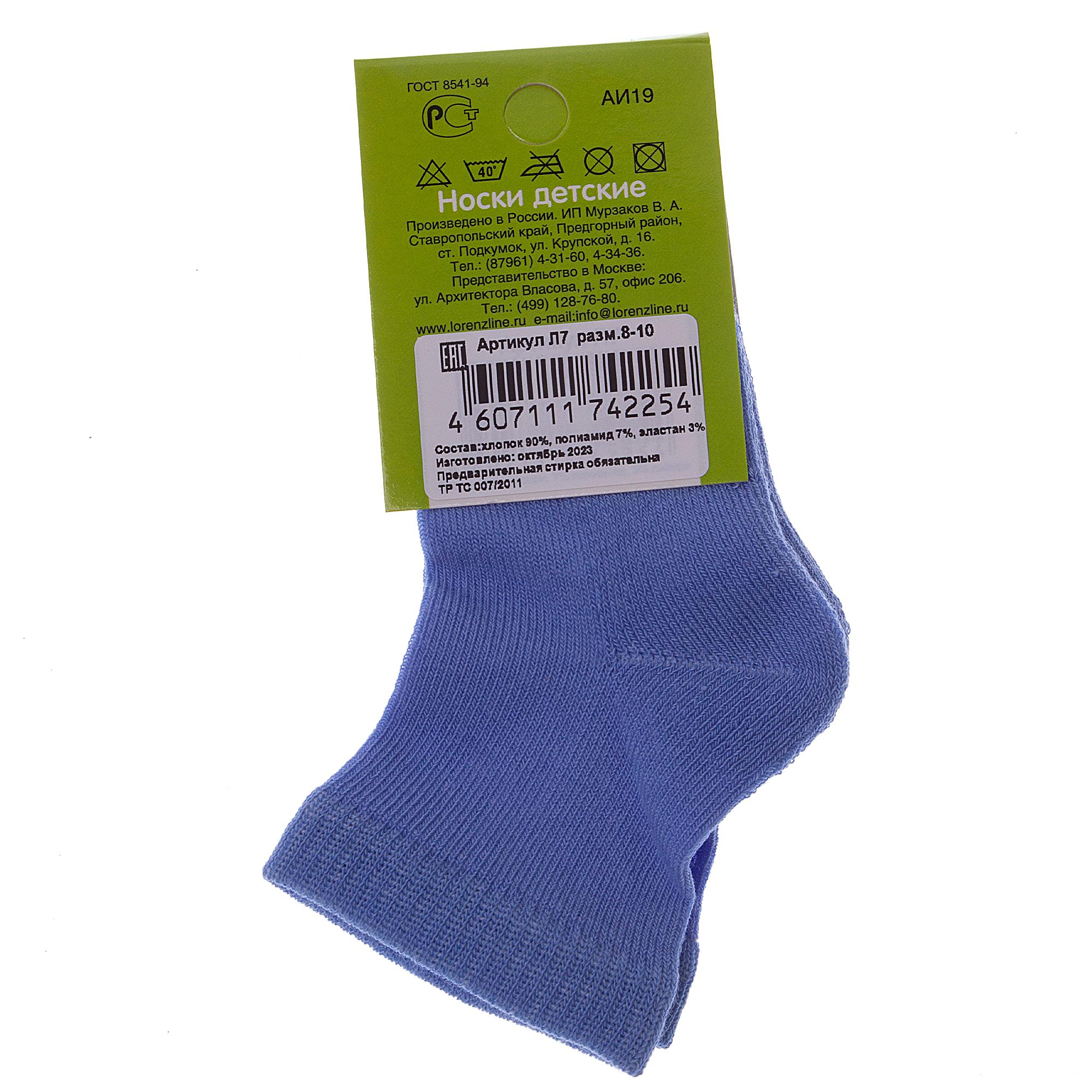 Межсезонные укороченные детские носки, цвет голубой, с махровым следом, классические, состав: 90% хлопок, 7% полиамид, 3% эластан (лайкра), арт. Л7. Производитель «ИП Мурзаков В.А., Ставропольский край, Россия» под брендом «Lorenzline».
