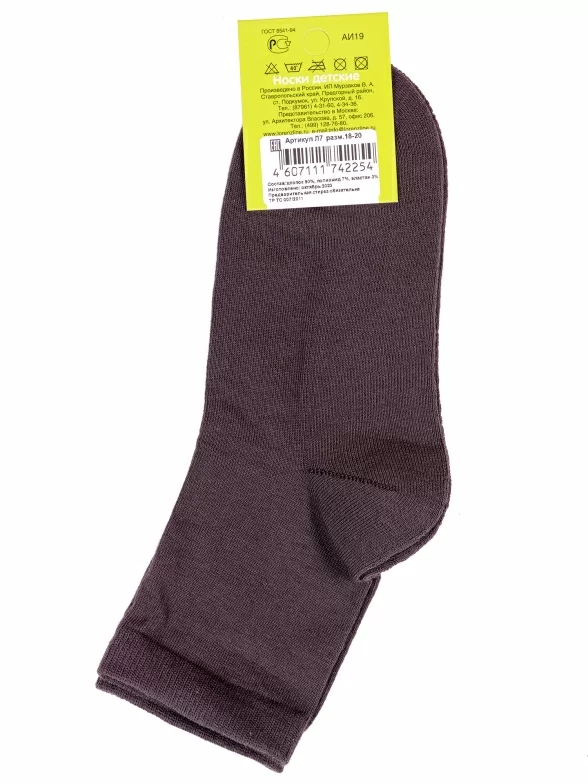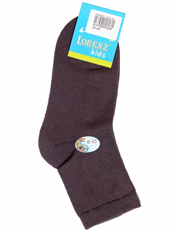 Межсезонные укороченные детские носки, цвет коричневый, с махровым следом, классические, состав: 90% хлопок, 7% полиамид, 3% эластан (лайкра), арт. Л7. Производитель «ИП Мурзаков В.А., Ставропольский край, Россия» под брендом «Lorenzline».