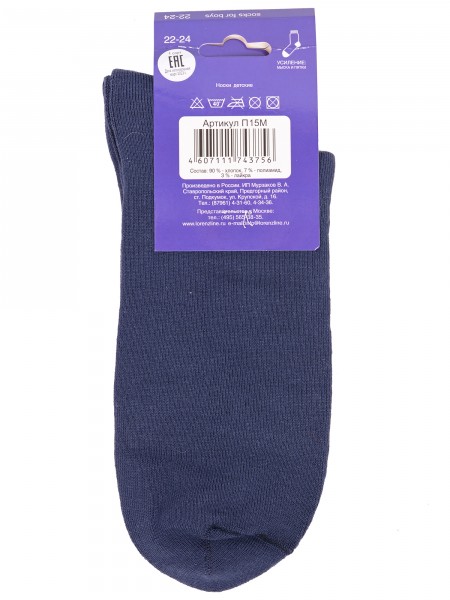 Межсезонные укороченные детские носки, цвет синий, с махровым следом, классические, состав: 90% хлопок, 7% полиамид, 3% эластан (лайкра), арт. Л7. Производитель «ИП Мурзаков В.А., Ставропольский край, Россия» под брендом «Lorenzline».