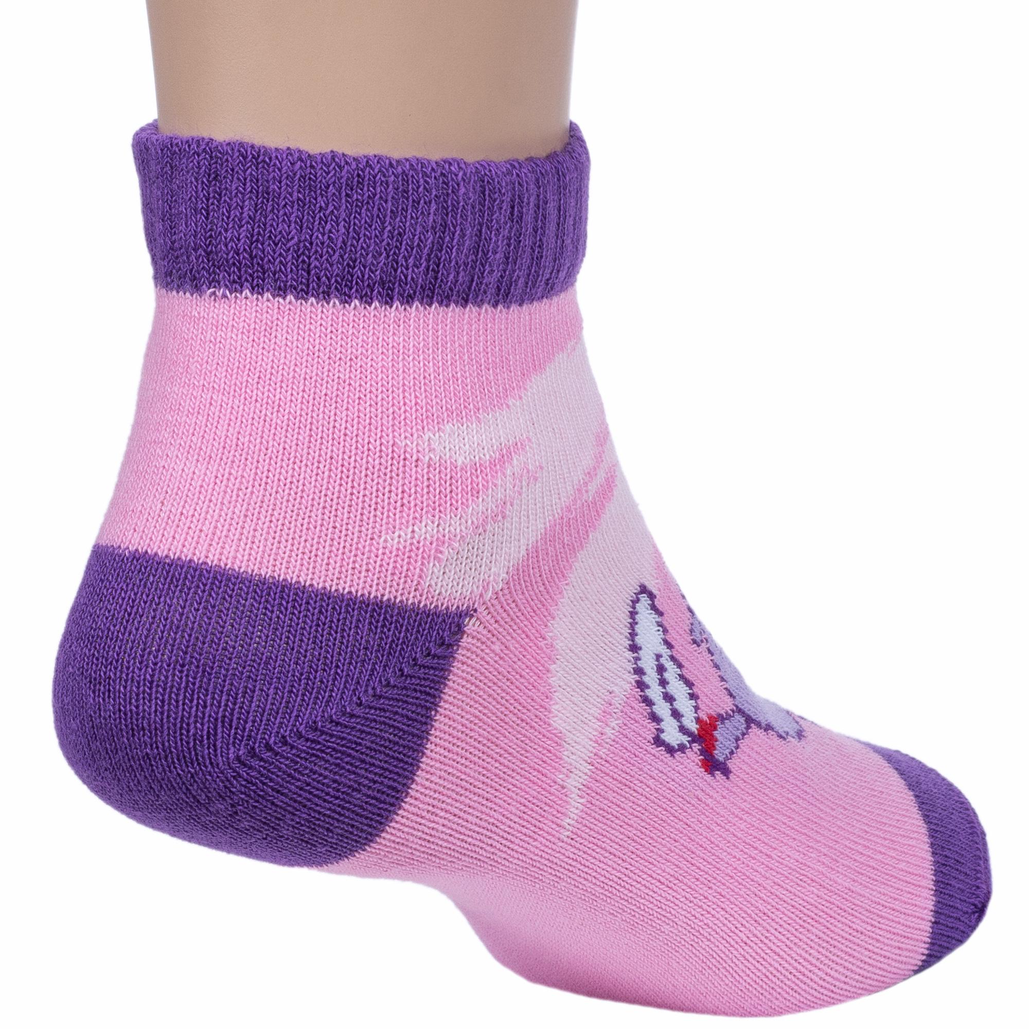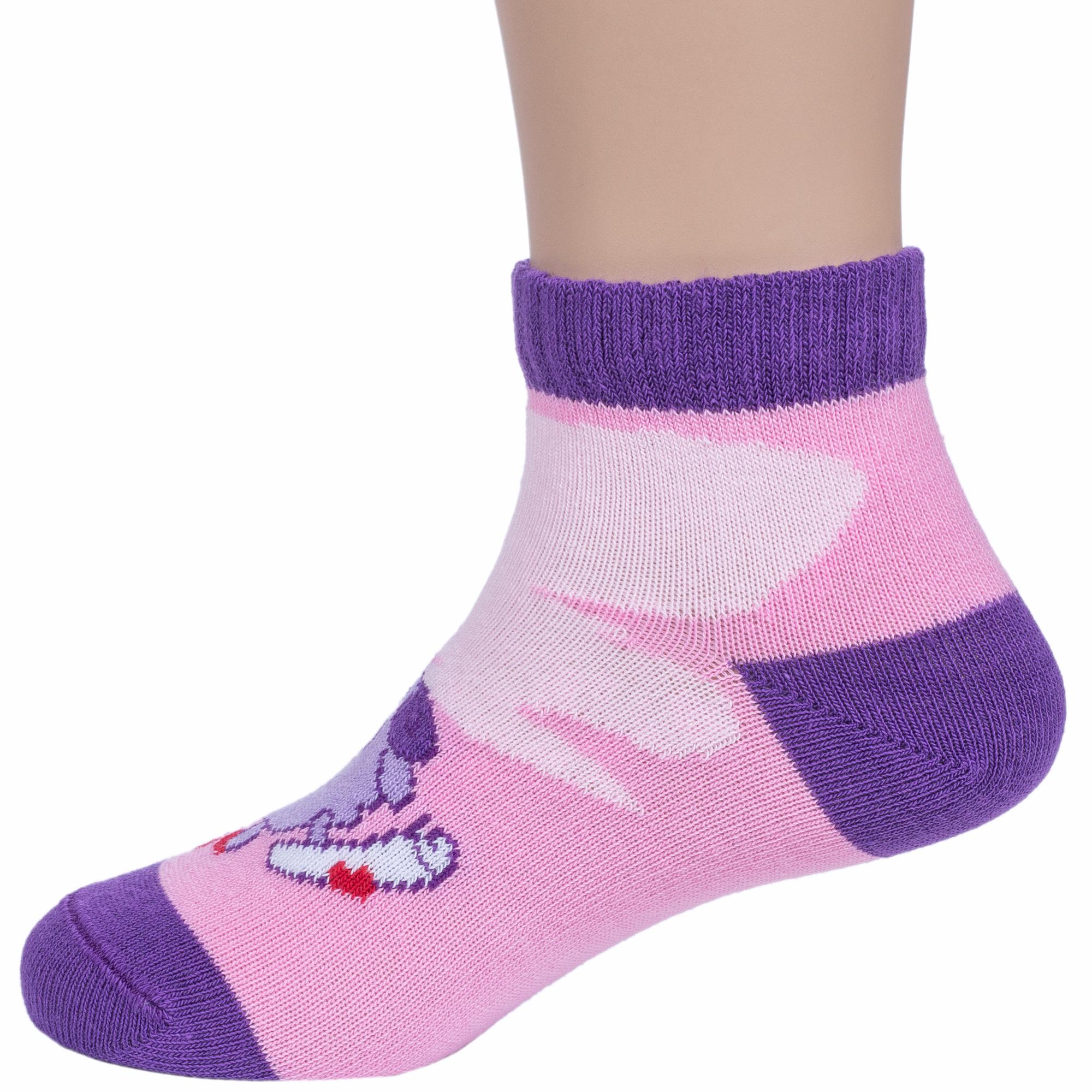 Летние укороченные детские носки, цвет розовый-многоцветные (мультиколор), повседневные, шов обычный (не бесшовные), принт (рисунок): животные, с узором, крупные контрастные рисунки, состав: 75% хлопок, 23% полиамид, 2% эластан, арт. 19С3094. Производитель «Брестский чулочный комбинат ОАО, Беларусь» под брендом «Брестские (бчк)».