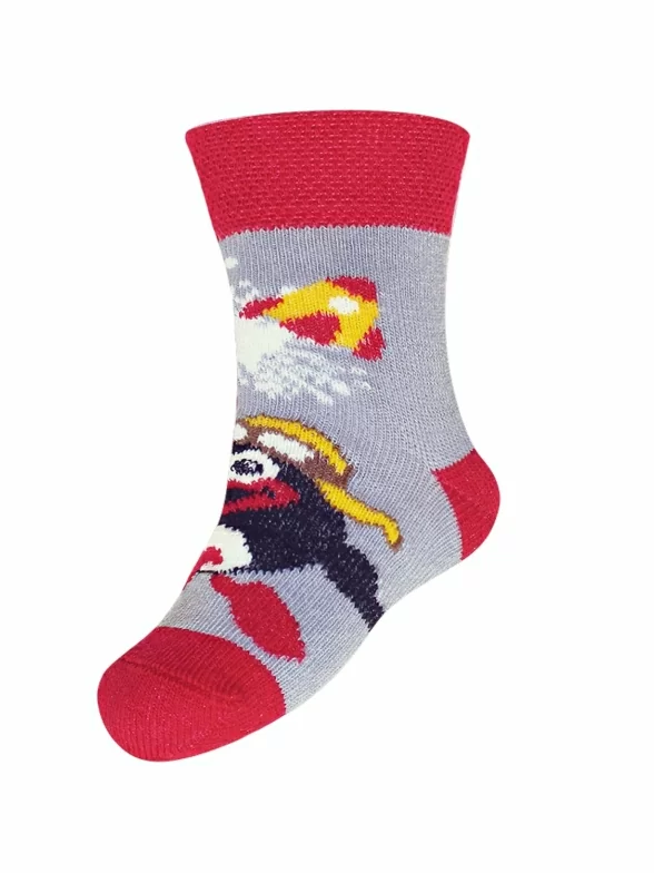Круглогодичные средней длины детские носки, цвет серый-многоцветные (мультиколор), повседневные, шов обычный (не бесшовные), принт (рисунок): животные, с узором, крупные контрастные рисунки, состав: 75% хлопок, 23% полиамид, 2% эластан, арт. 19С3093. Производитель «Брестский чулочный комбинат ОАО, Беларусь» под брендом «Брестские (бчк)».
