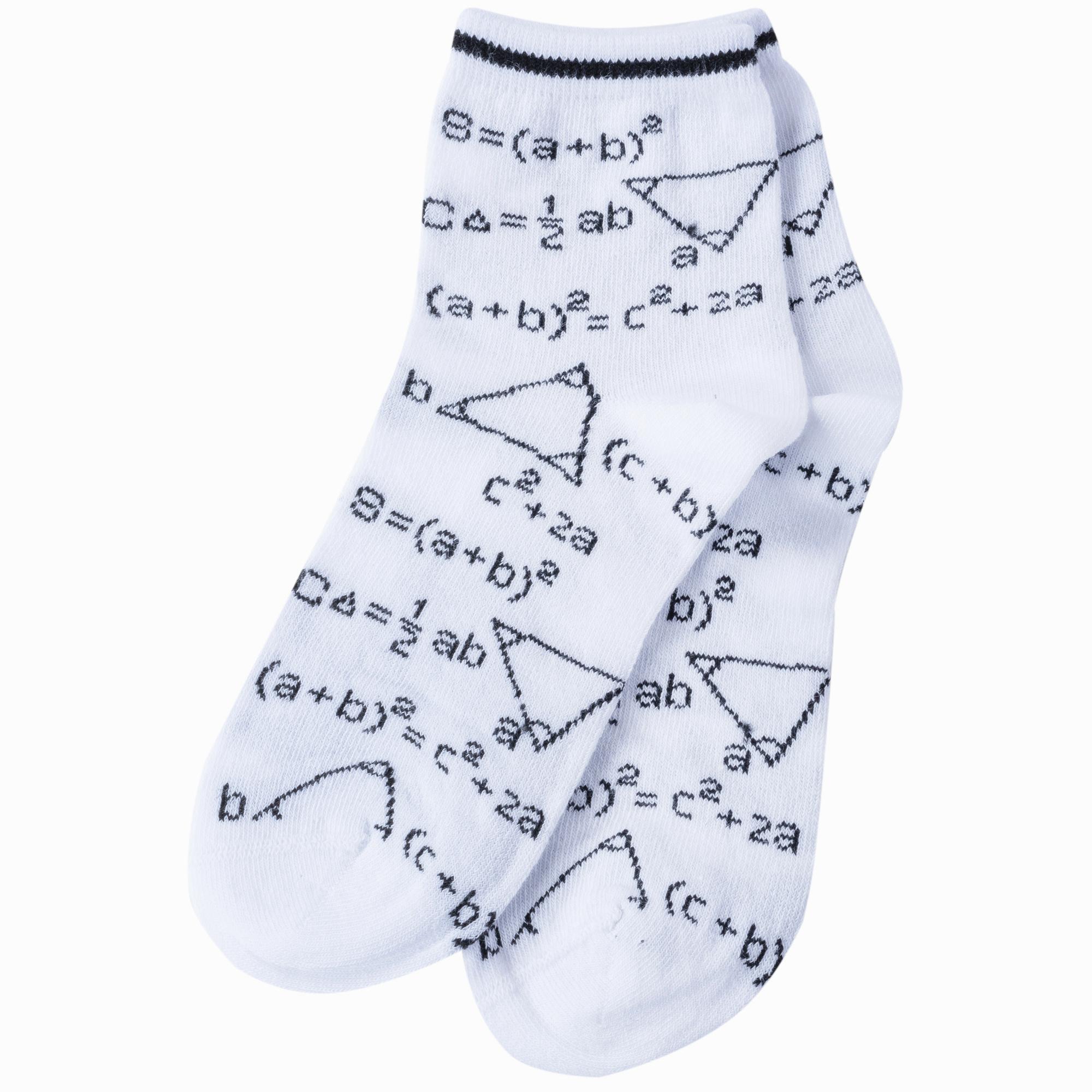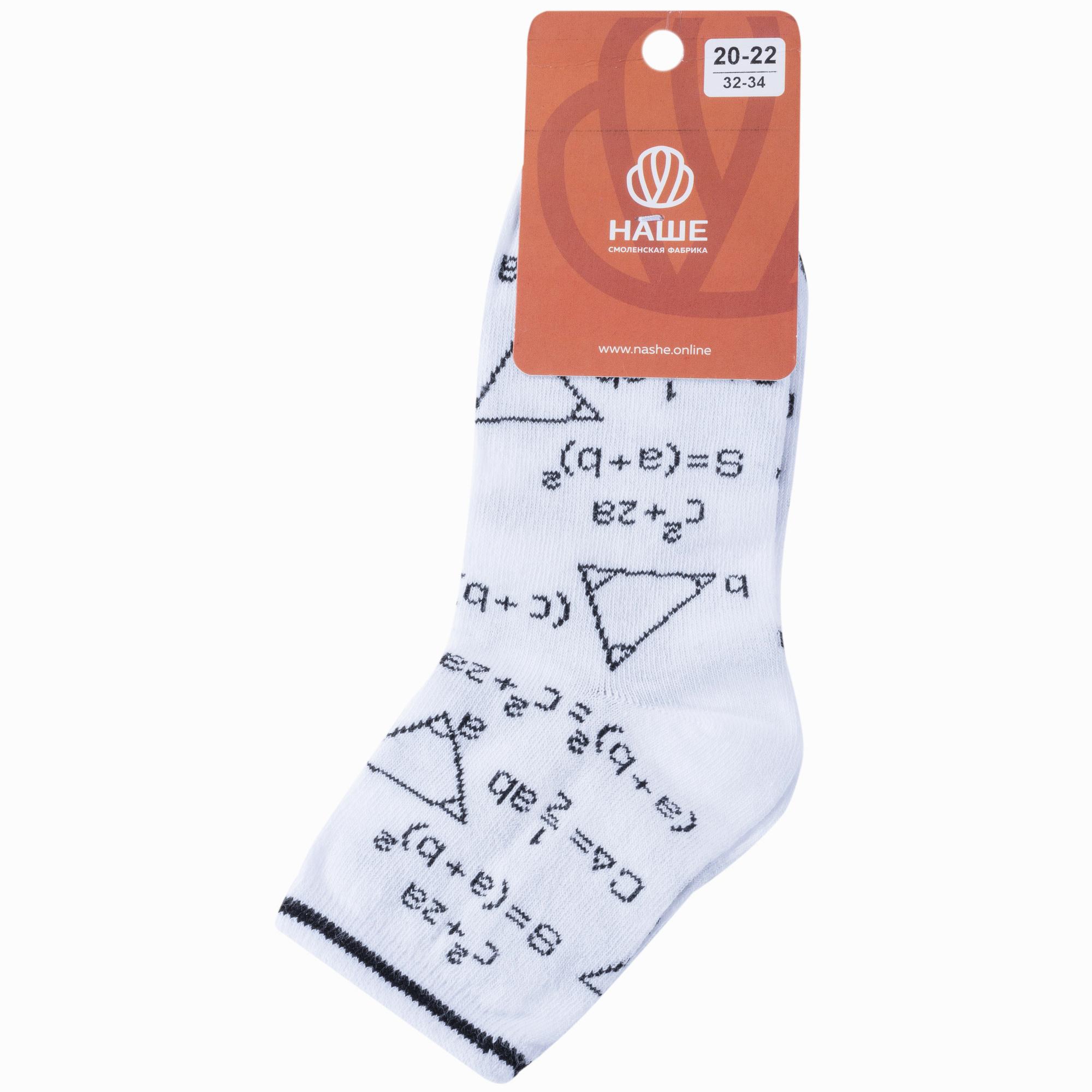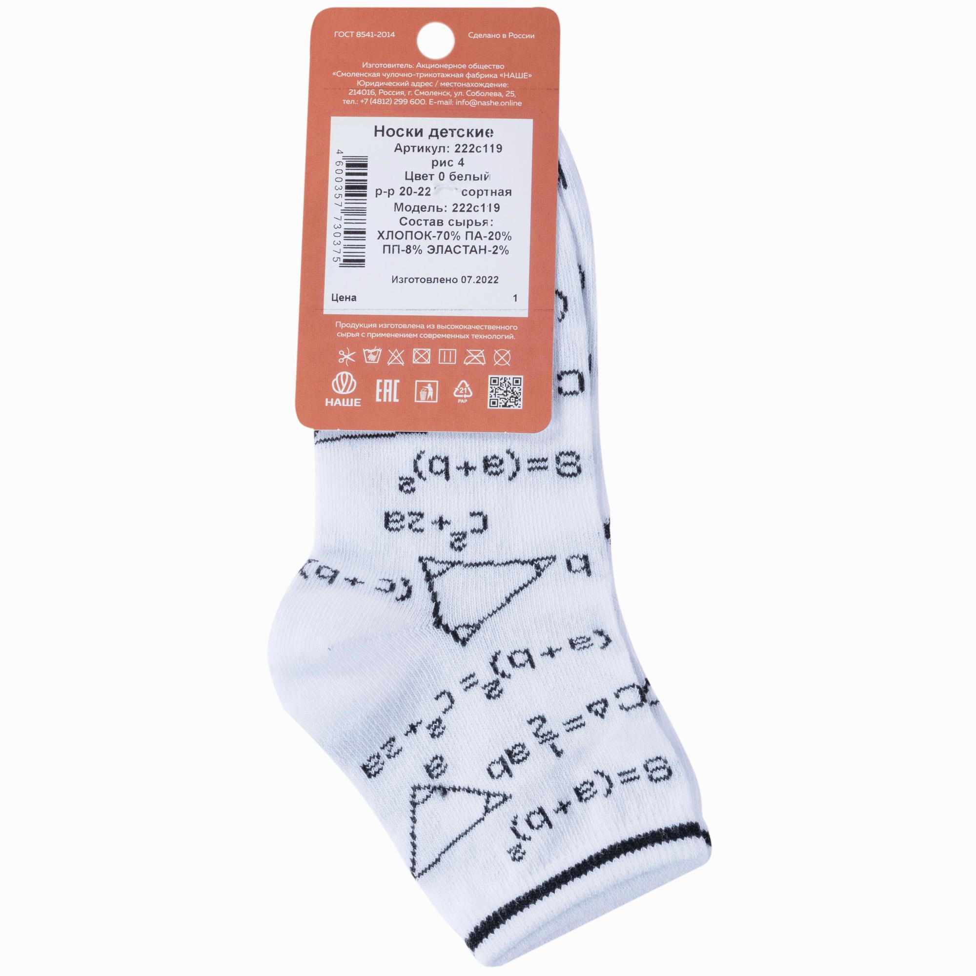 Круглогодичные укороченные детские носки, цвет черный + белый-белый, повседневные, шов обычный (не бесшовные), принт (рисунок): учеба, с узором, состав: 70% хлопок, 20% полиамид, 8% полипропилен, 2% эластан, арт. 222С119. Производитель «Смоленская чулочная фабрика, Россия» под брендом «Наше смоленской чулочной фабрики».