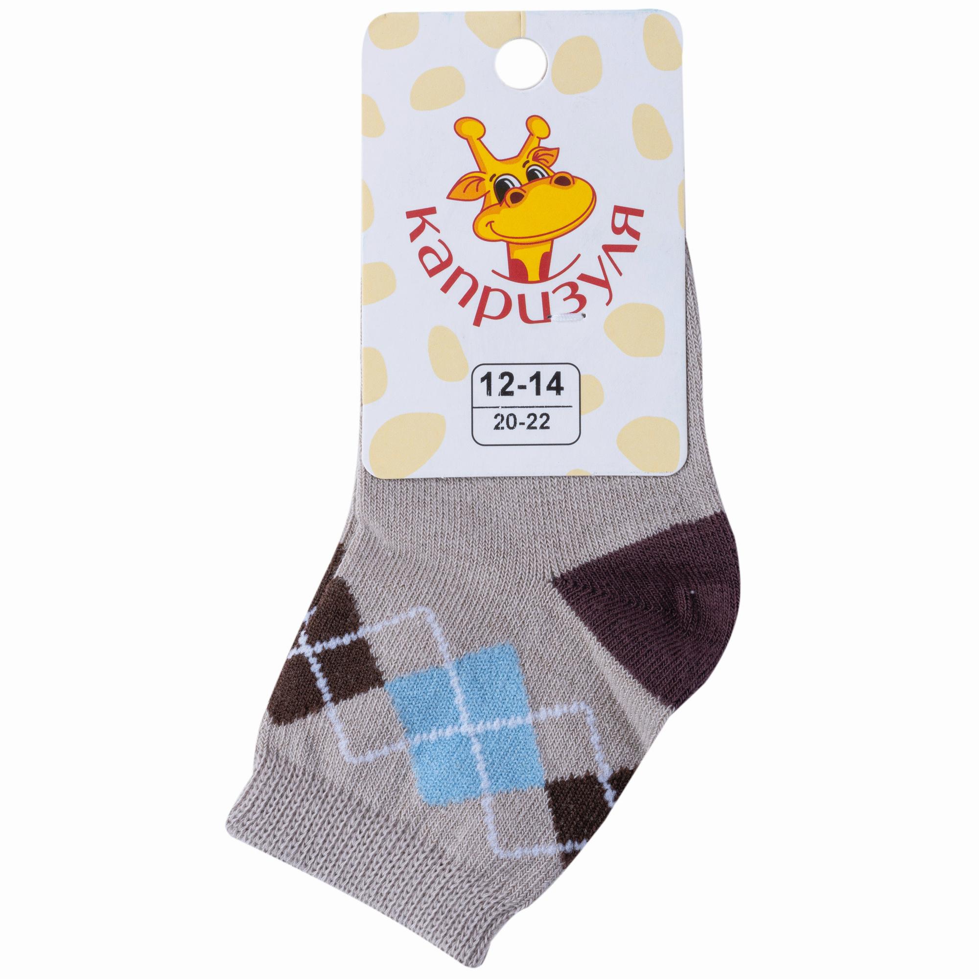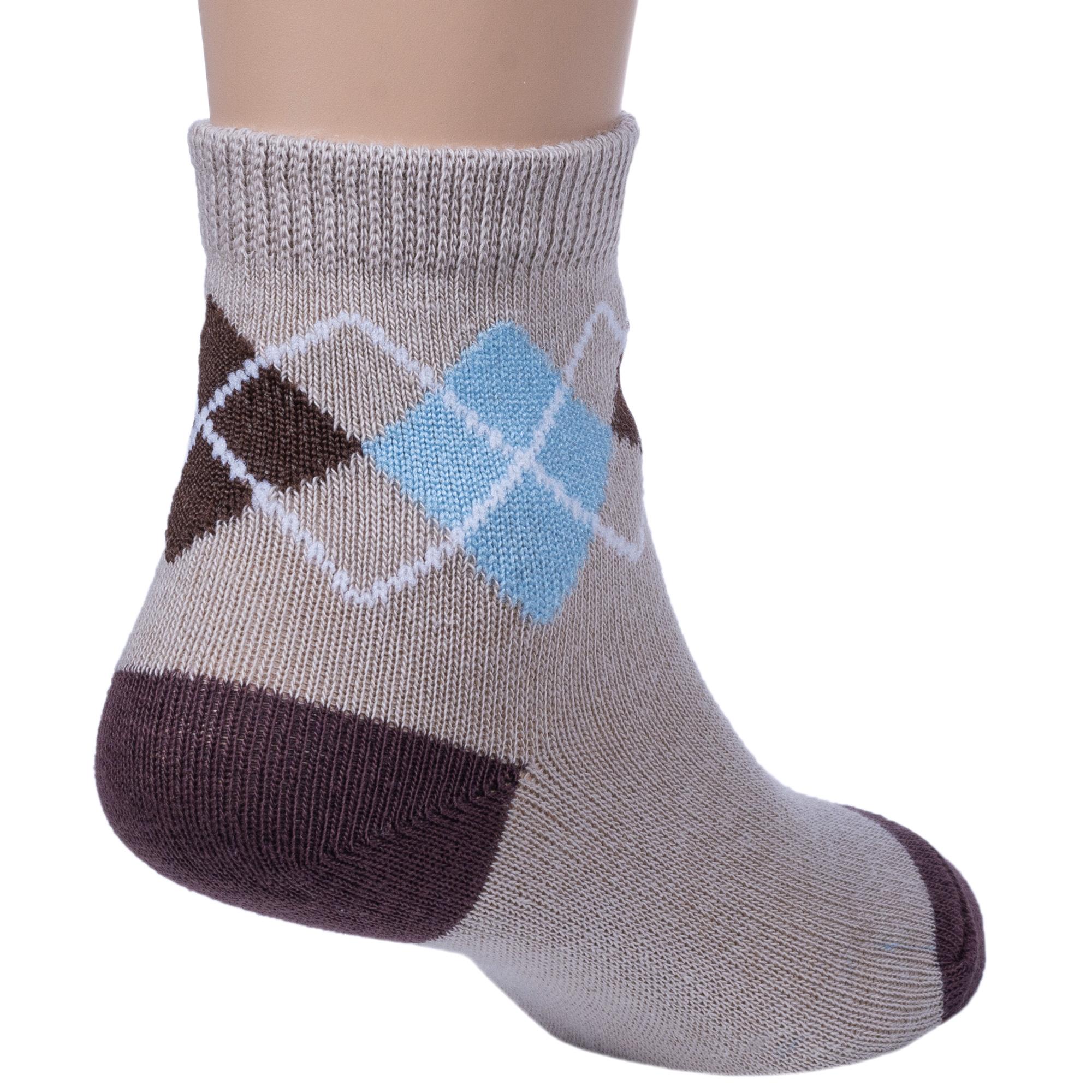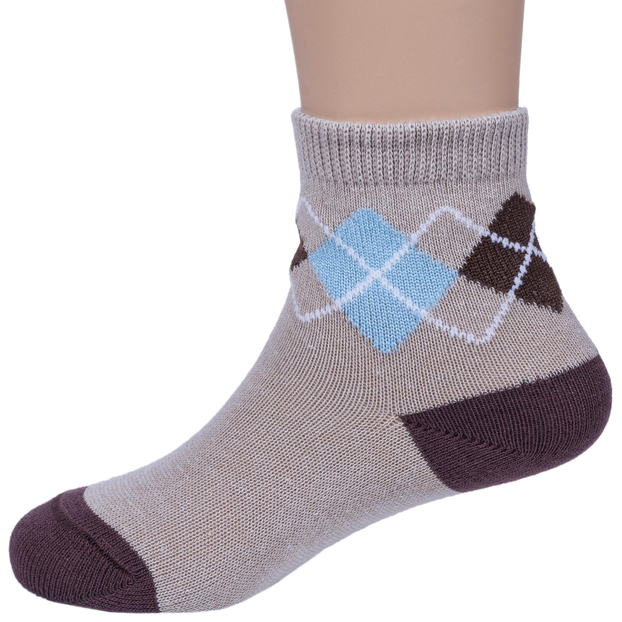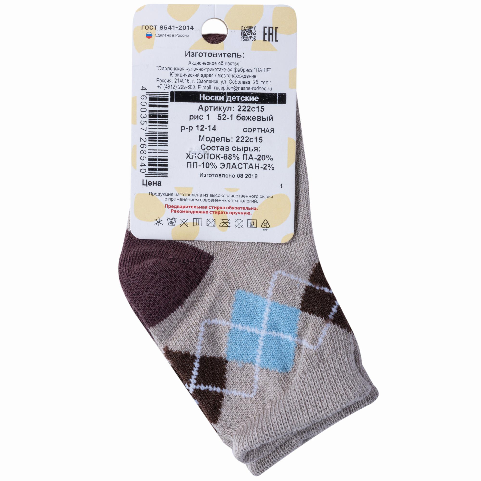 Круглогодичные укороченные детские носки, цвет бежевый, классические, шов обычный (не бесшовные), принт (рисунок): геометрия, аргайл, с узором, состав: 68% хлопок, 20% полиамид, 10% полипропилен, 2% эластан, арт. 222С15. Производитель «Смоленская чулочная фабрика, Россия» под брендом «Наше смоленской чулочной фабрики».