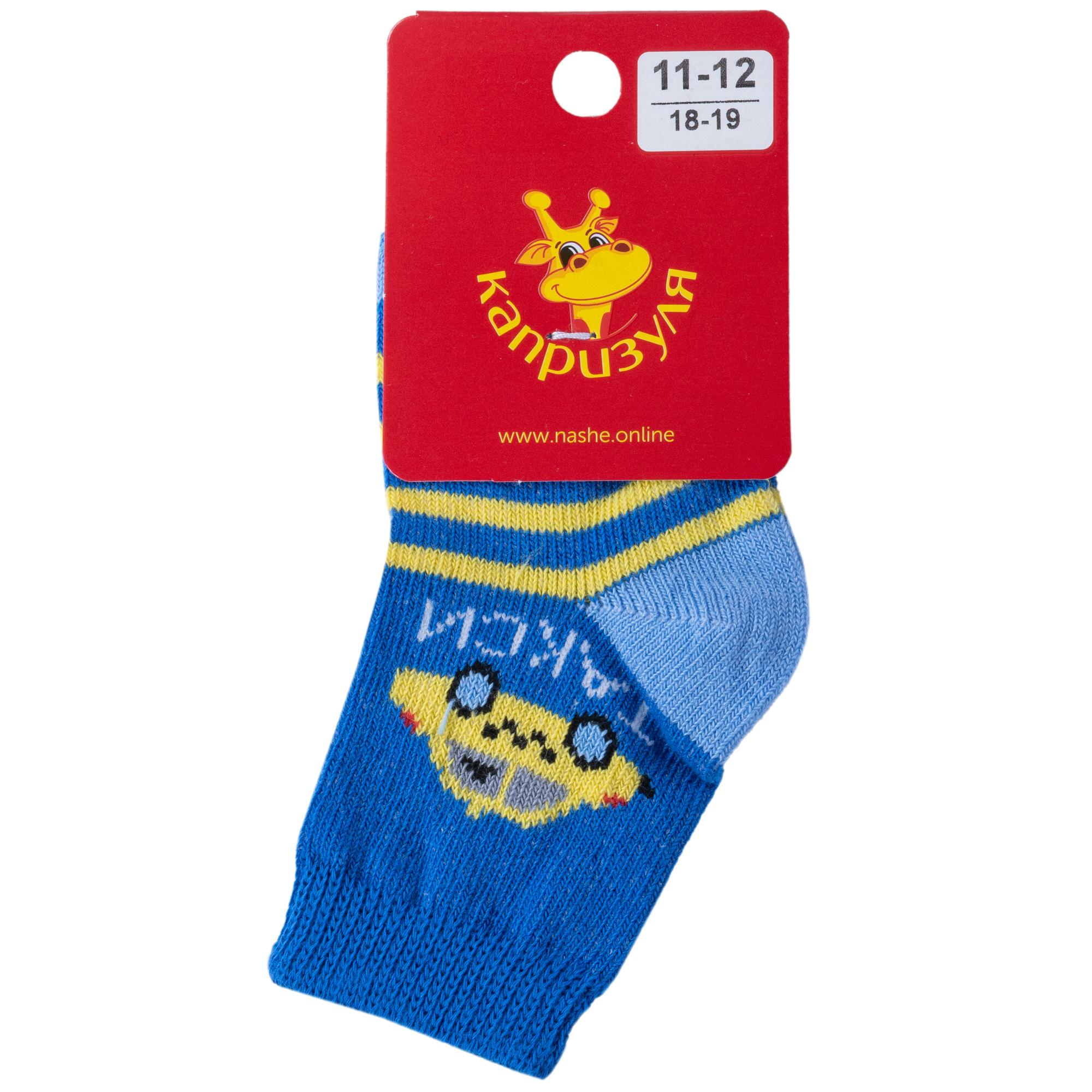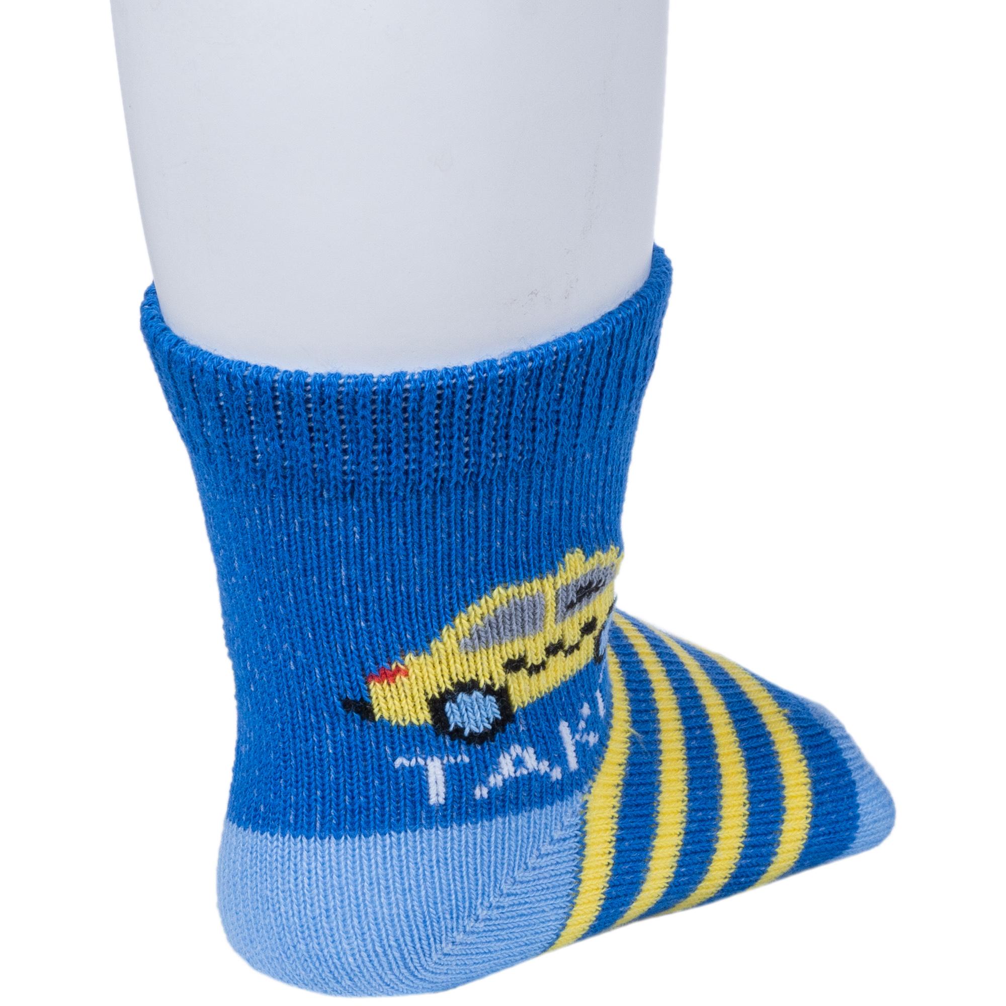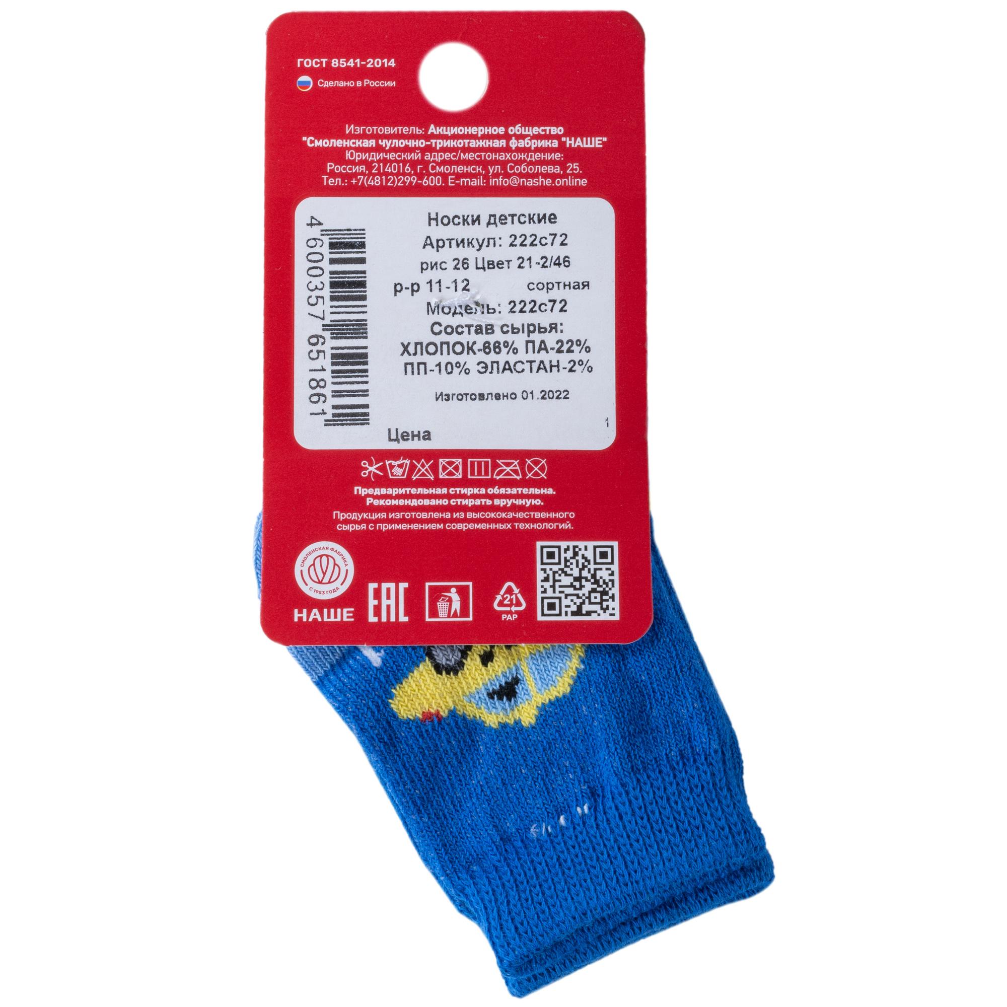 Круглогодичные укороченные детские носки, цвет многоцветные (мультиколор)-джинс, повседневные, шов обычный (не бесшовные), принт (рисунок): транспорт, с узором, крупные контрастные рисунки, состав: 66% хлопок, 22% полиамид, 10% полипропилен, 2% эластан, арт. 222С72. Производитель «Смоленская чулочная фабрика, Россия» под брендом «Наше смоленской чулочной фабрики».
