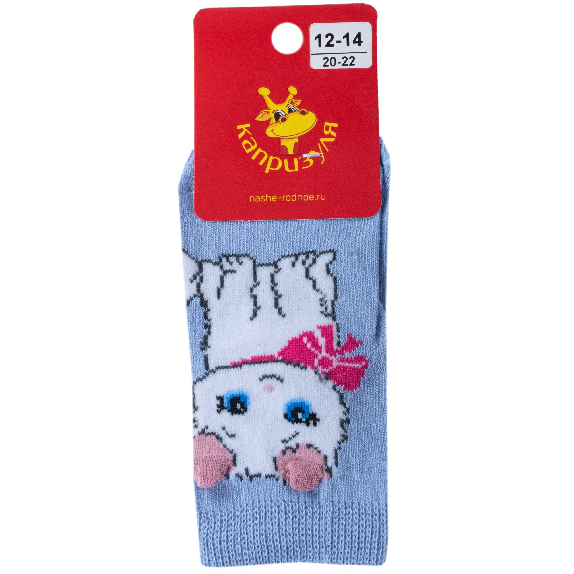 Круглогодичные укороченные детские носки, цвет голубой, необычные, повседневные, шов обычный (не бесшовные), принт (рисунок): животные, с узором, крупные контрастные рисунки, состав: 60% хлопок, 18% полиамид, 20% полипропилен, 2% эластан, арт. 222С11. Производитель «Смоленская чулочная фабрика, Россия» под брендом «Наше смоленской чулочной фабрики».