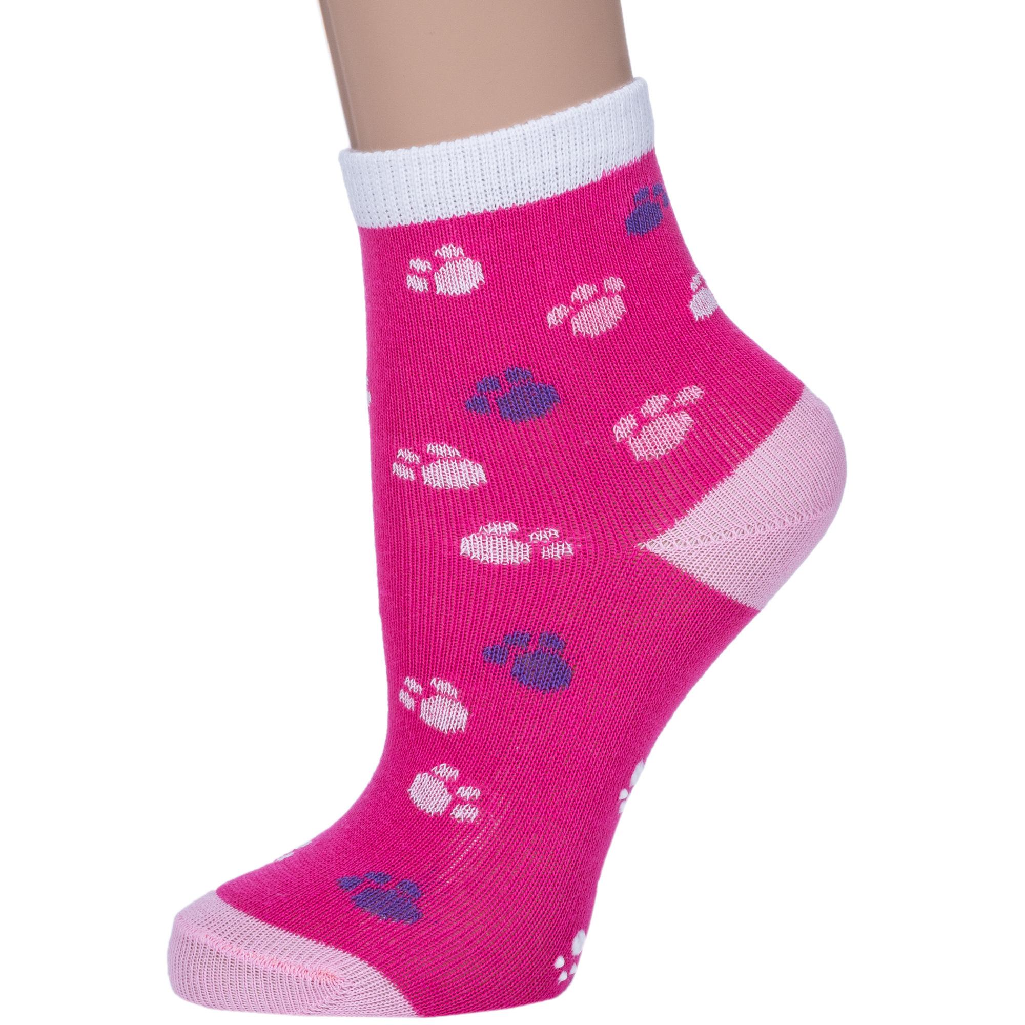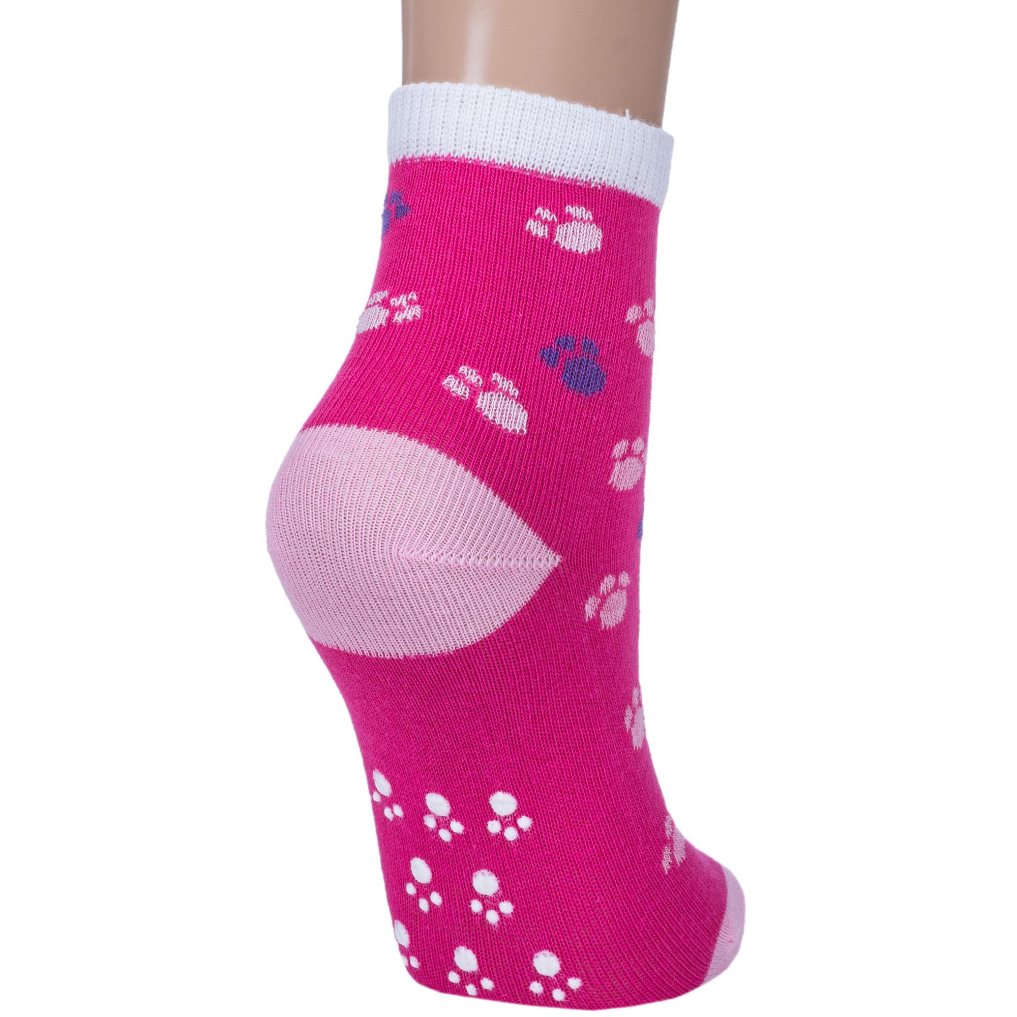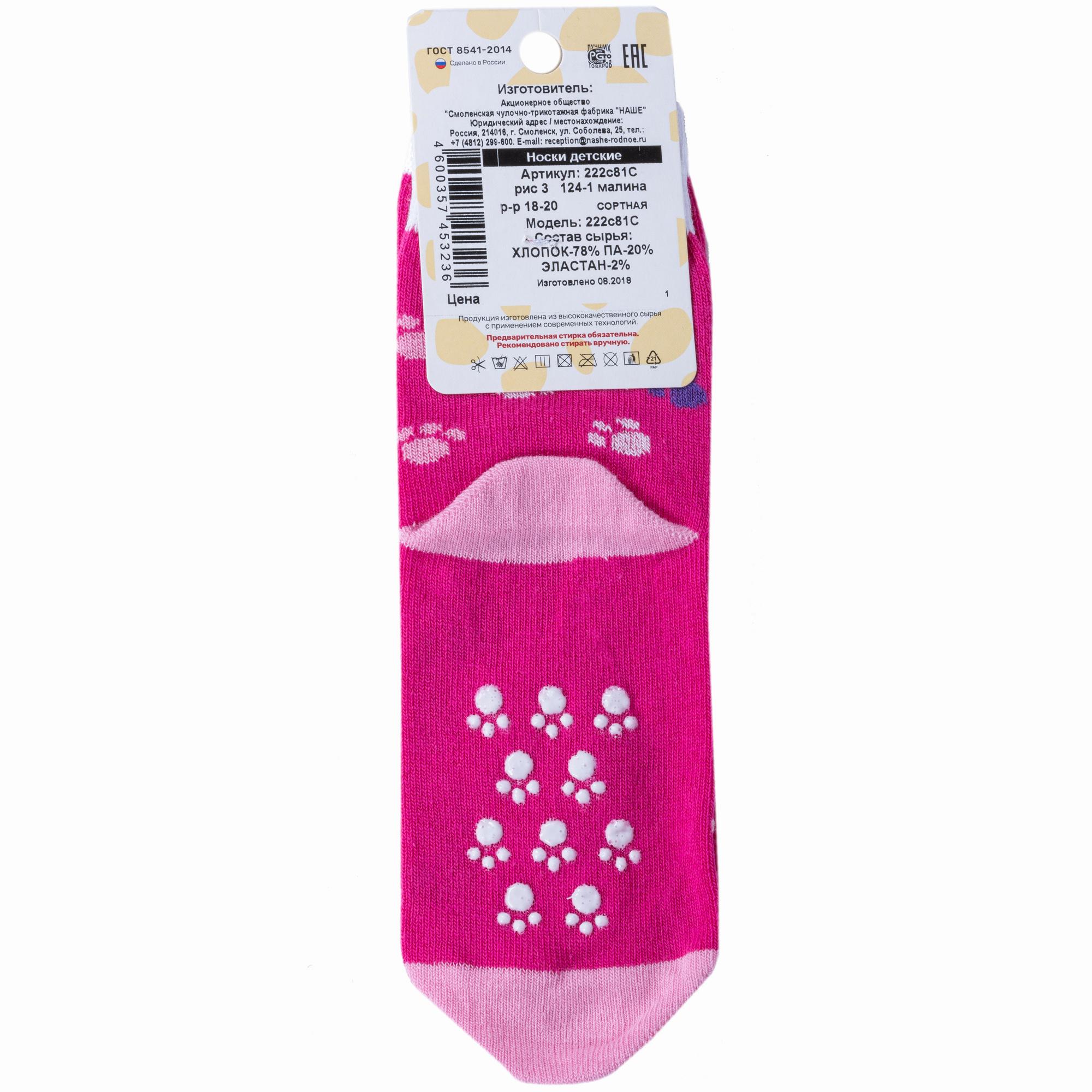 Круглогодичные укороченные детские носки, цвет розовый, с нескользящей стопой, необычные, повседневные, шов обычный (не бесшовные), принт (рисунок): животные, с узором, состав: 78% хлопок, 20% полиамид, 2% эластан, арт. 222С81С. Производитель «Смоленская чулочная фабрика, Россия» под брендом «Наше смоленской чулочной фабрики».