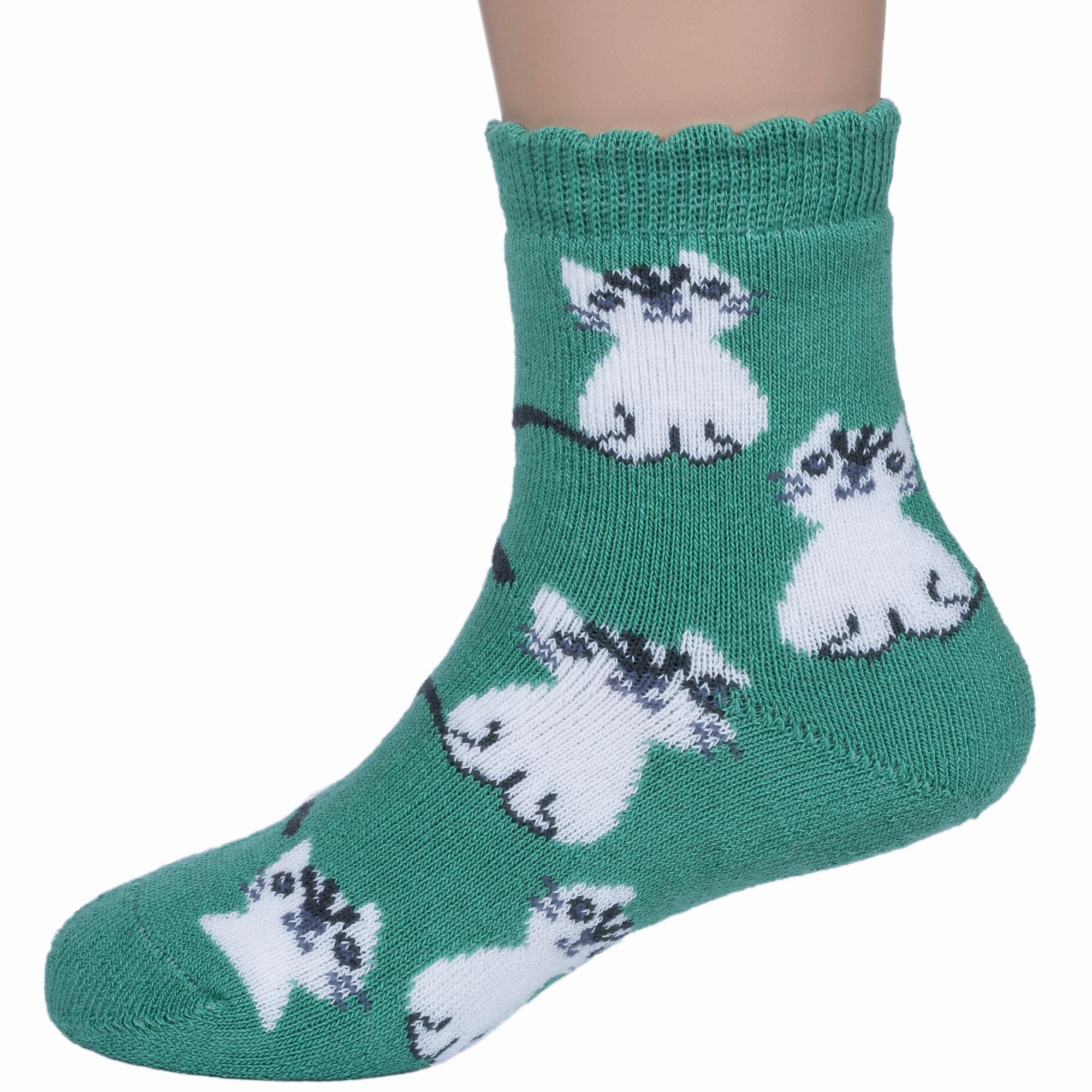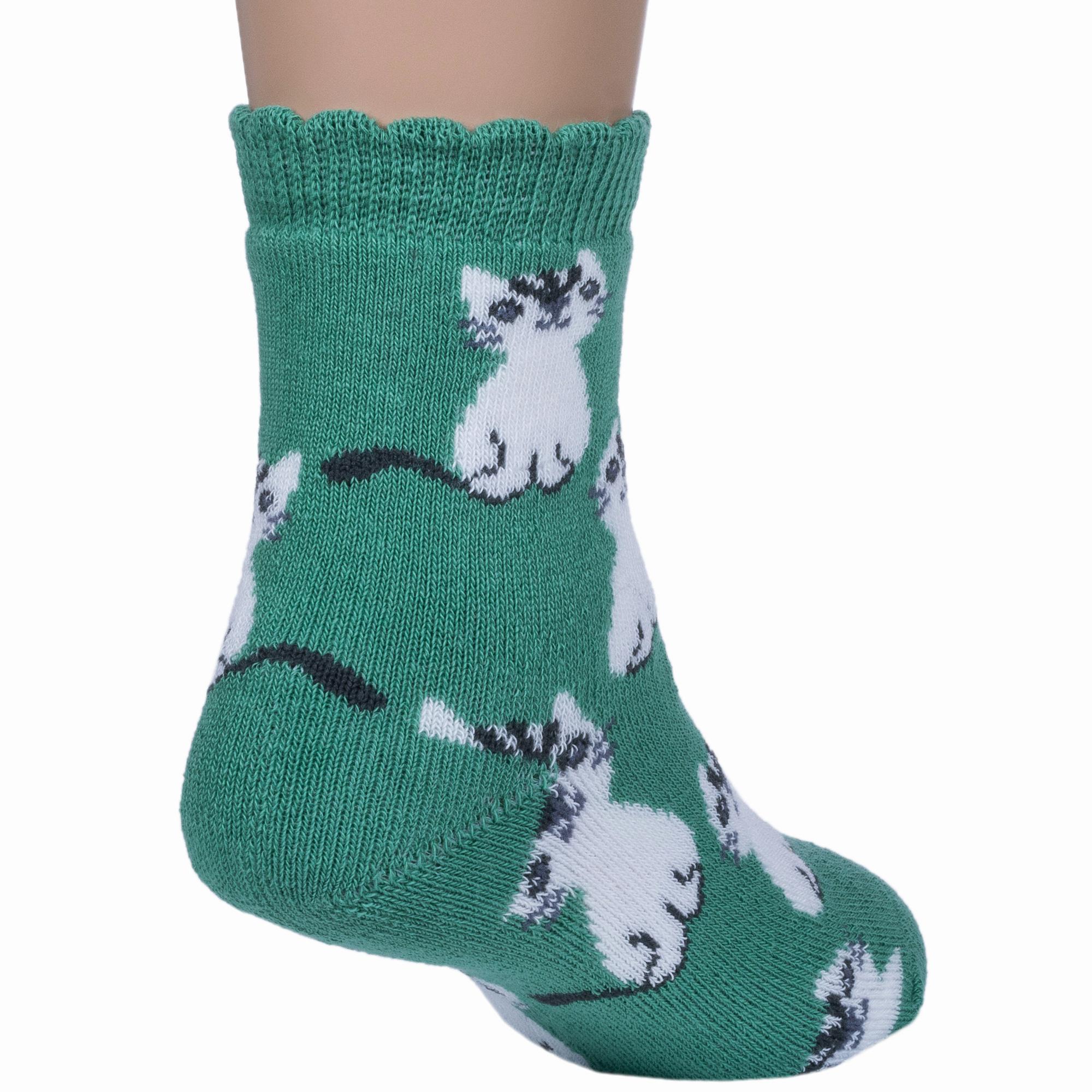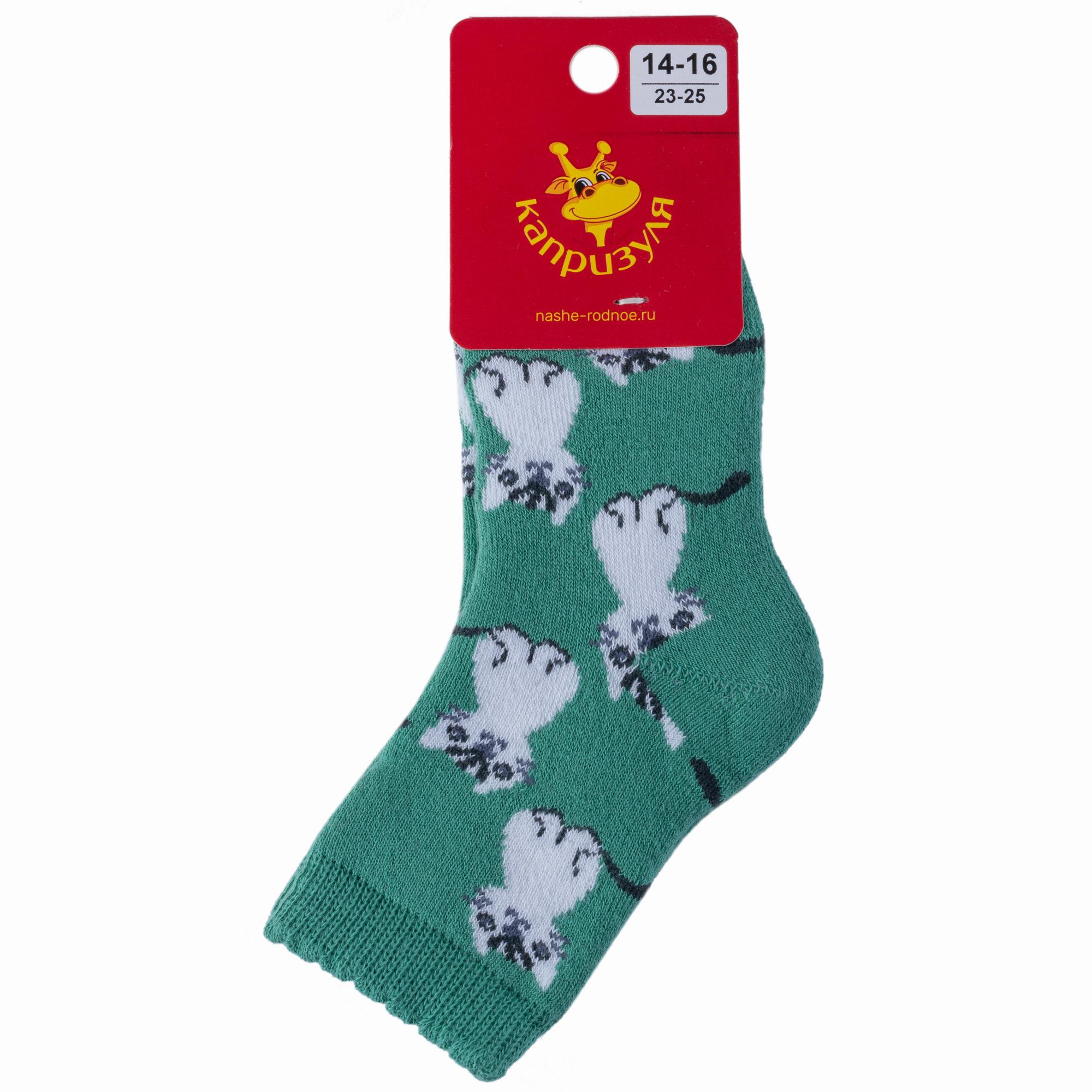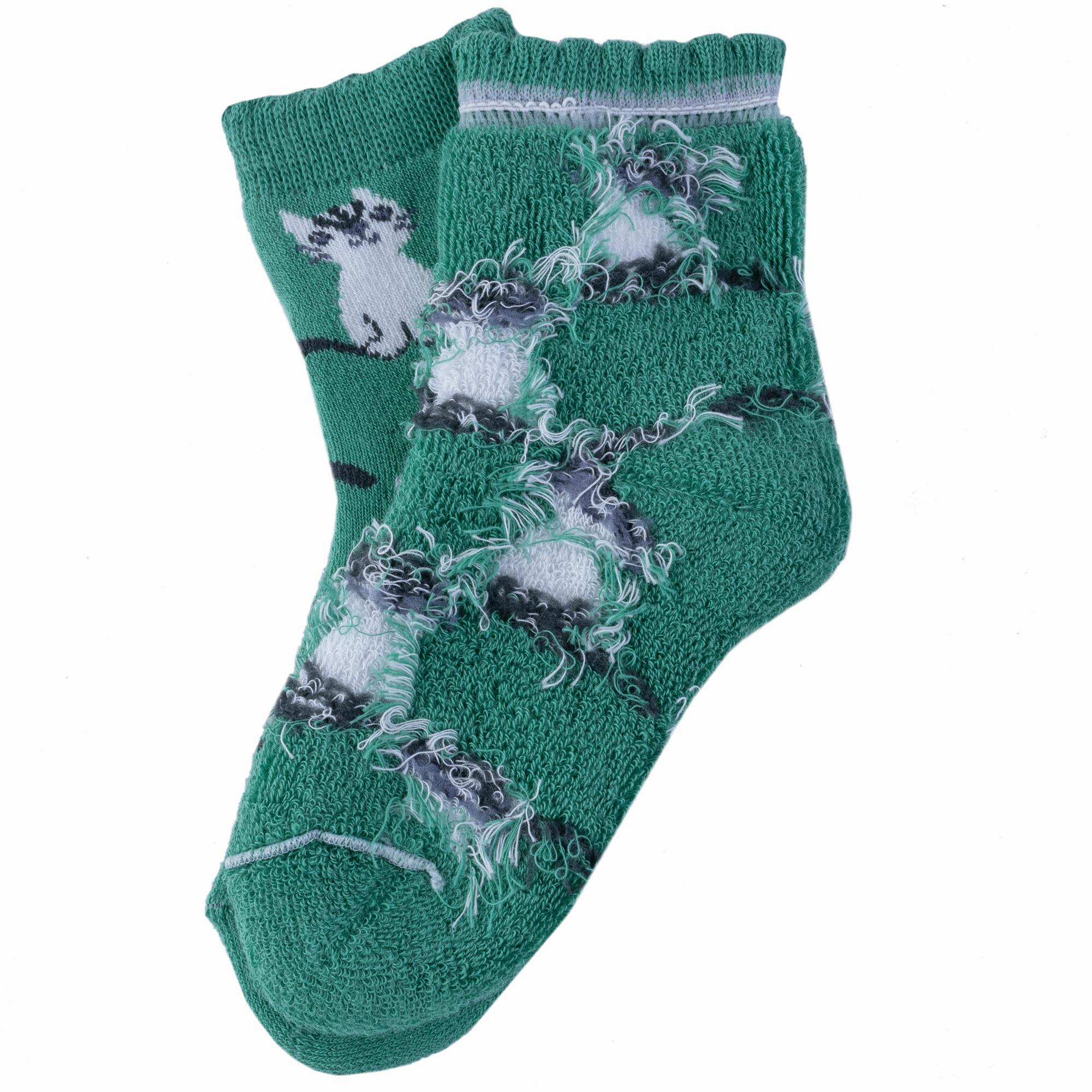 Зимние укороченные детские носки, цвет зеленый, теплые, махровые, повседневные, шов обычный (не бесшовные), принт (рисунок): животные, с узором, крупные контрастные рисунки, состав: 80% хлопок, 10% полиамид, 8% полипропилен, 2% эластан, арт. 232С13. Производитель «Смоленская чулочная фабрика, Россия» под брендом «Наше смоленской чулочной фабрики».