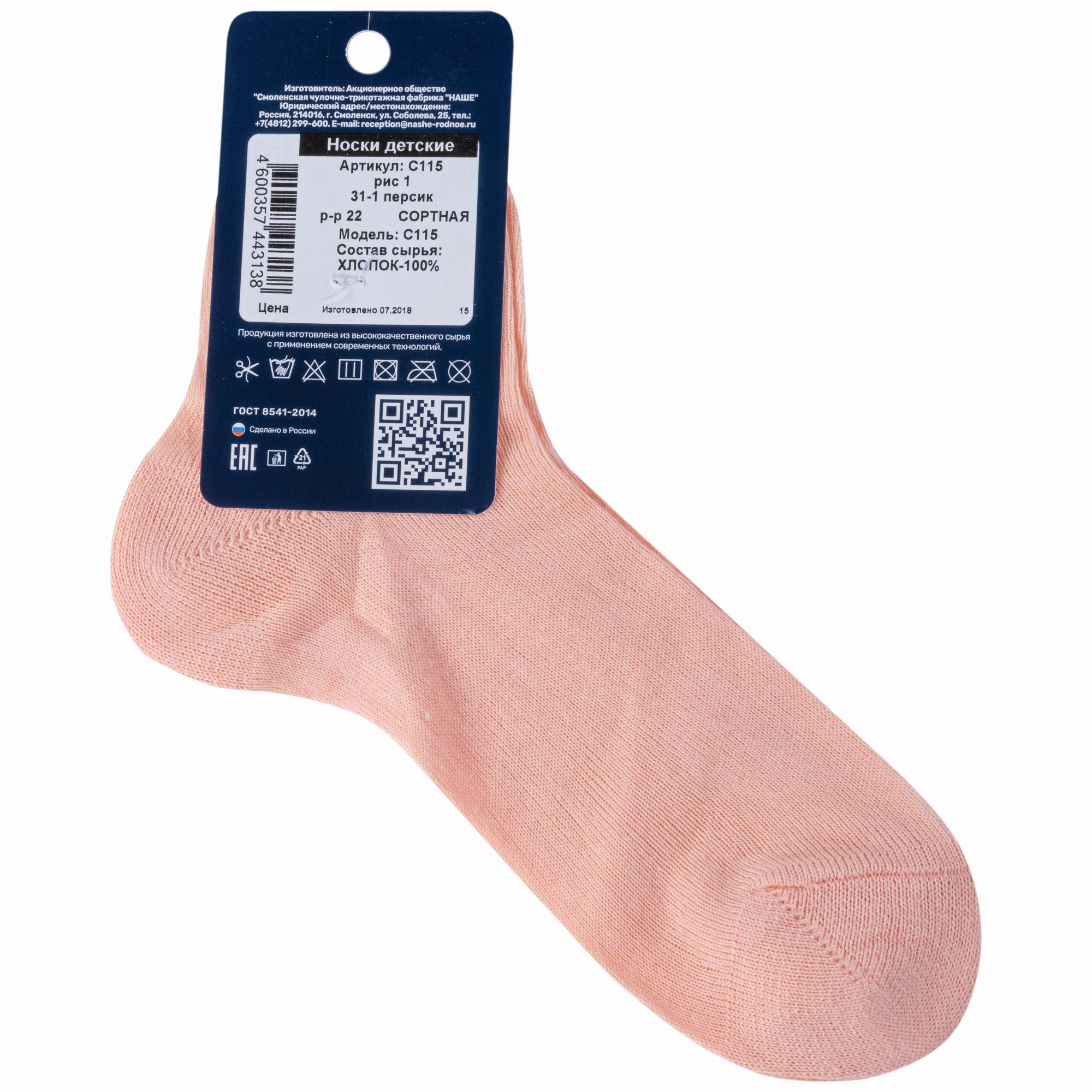 Детские носки из 100% хлопка "НАШЕ" Смоленской чулочной фабрики С115, рис. 1, ПЕРСИК №31-1