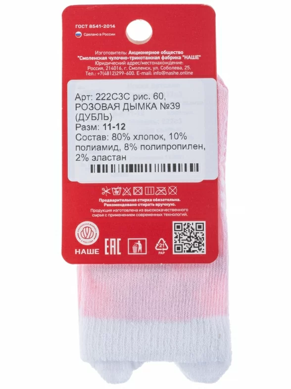 Детские носки "НАШЕ" Смоленской чулочной фабрики, 222С3, рис. 60, РОЗОВАЯ ДЫМКА №39