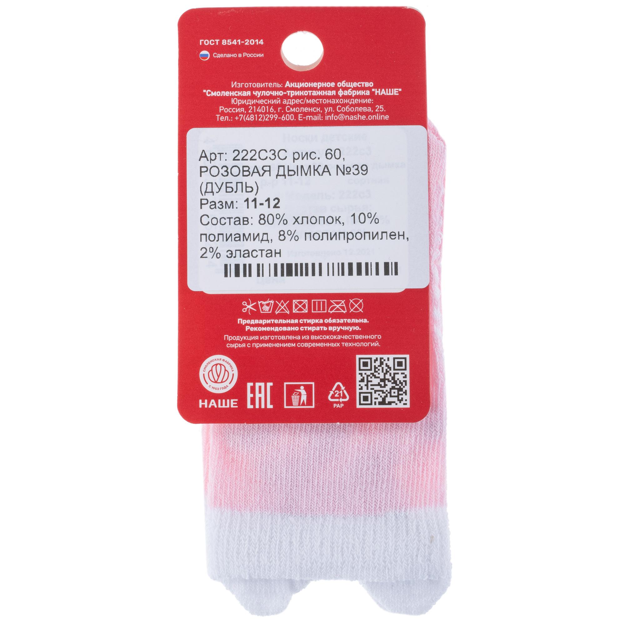 Детские носки "НАШЕ" Смоленской чулочной фабрики 222С3, рис. 60, РОЗОВАЯ ДЫМКА №39