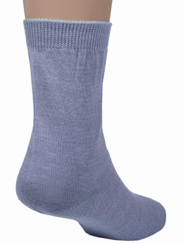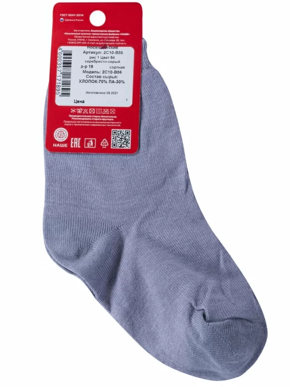Круглогодичные средней длины детские носки, цвет серый, классические, шов обычный (не бесшовные), принт (рисунок): однотонный, без рисунков/узоров, состав: 70% хлопок, 30% полиамид, арт. 2С10-В56. Производитель «Смоленская чулочная фабрика, Россия» под брендом «Наше смоленской чулочной фабрики».