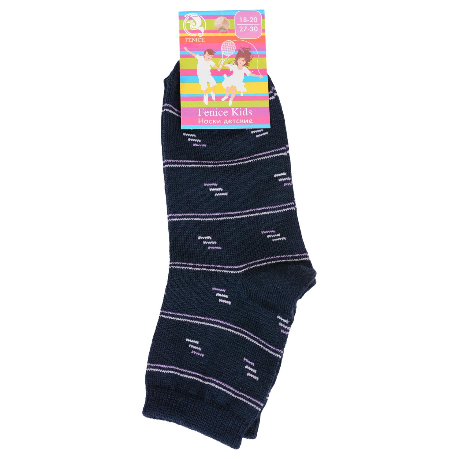 Зимние укороченные детские носки, цвет темно-синий, теплые, классические, шов обычный (не бесшовные), принт (рисунок): полоски, с узором, состав: 80% полушерсть, 14% полиамид, 2% эластан, 4% полипропилен, арт. 236С2. Производитель «Смоленская чулочная фабрика, Россия» под брендом «Наше смоленской чулочной фабрики».