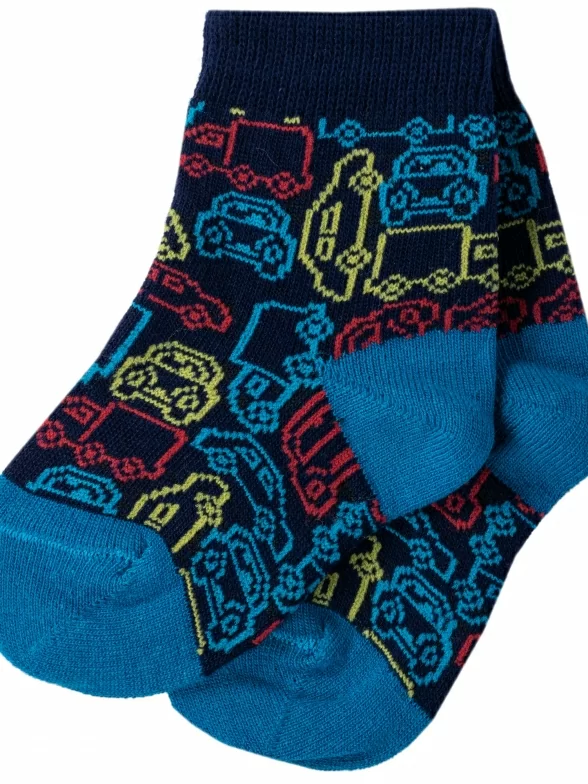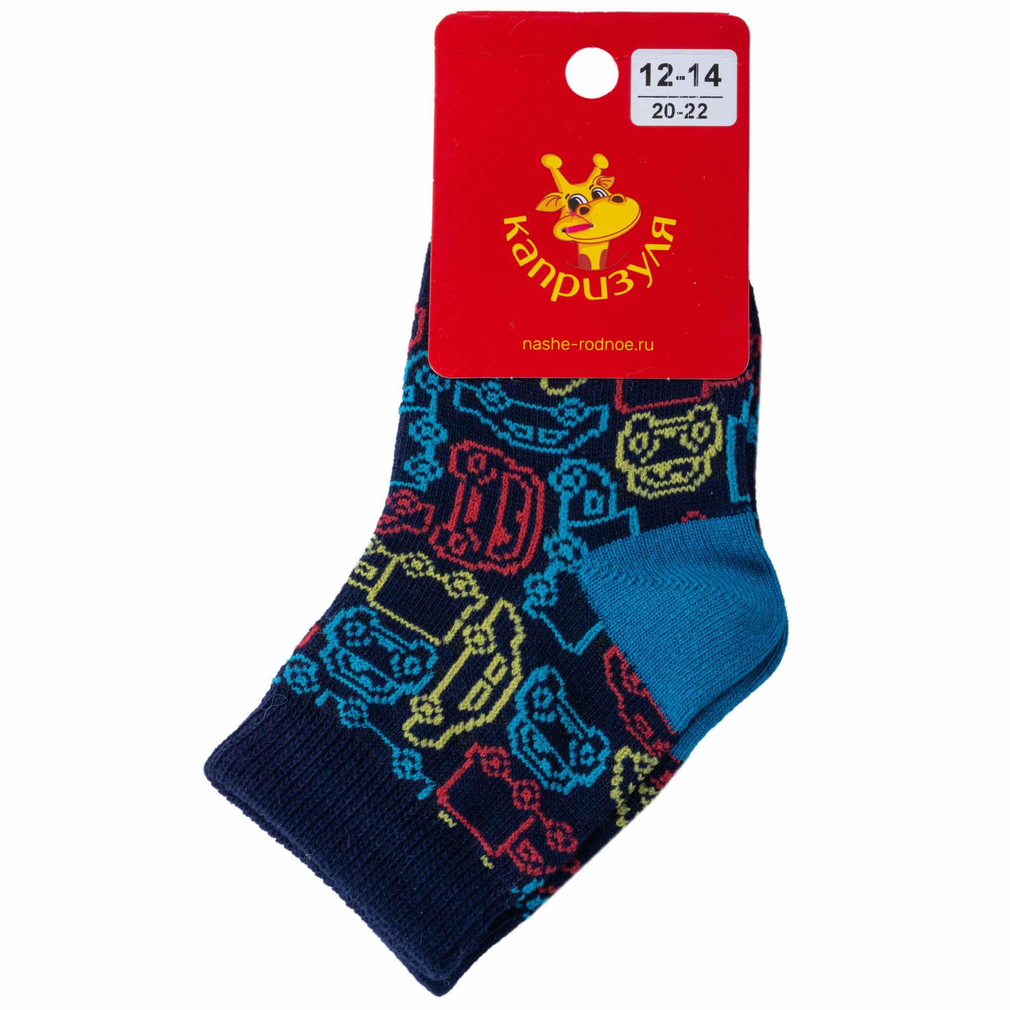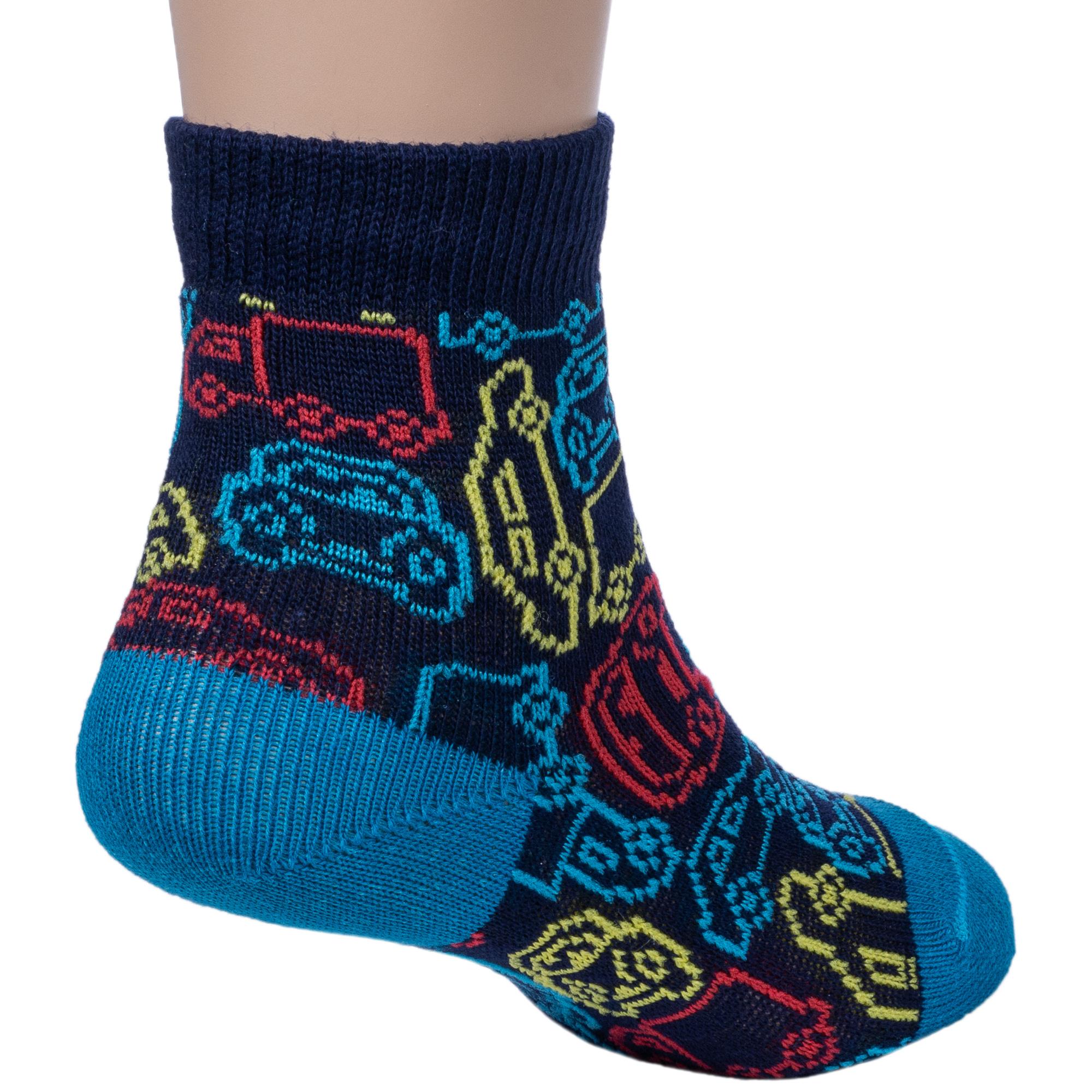 Круглогодичные укороченные детские носки, цвет темно-синий, повседневные, шов обычный (не бесшовные), принт (рисунок): транспорт, с узором, крупные контрастные рисунки, состав: 66% хлопок, 22% полиамид, 10% полипропилен, 2% эластан, арт. 222С72. Производитель «Смоленская чулочная фабрика, Россия» под брендом «Наше смоленской чулочной фабрики».