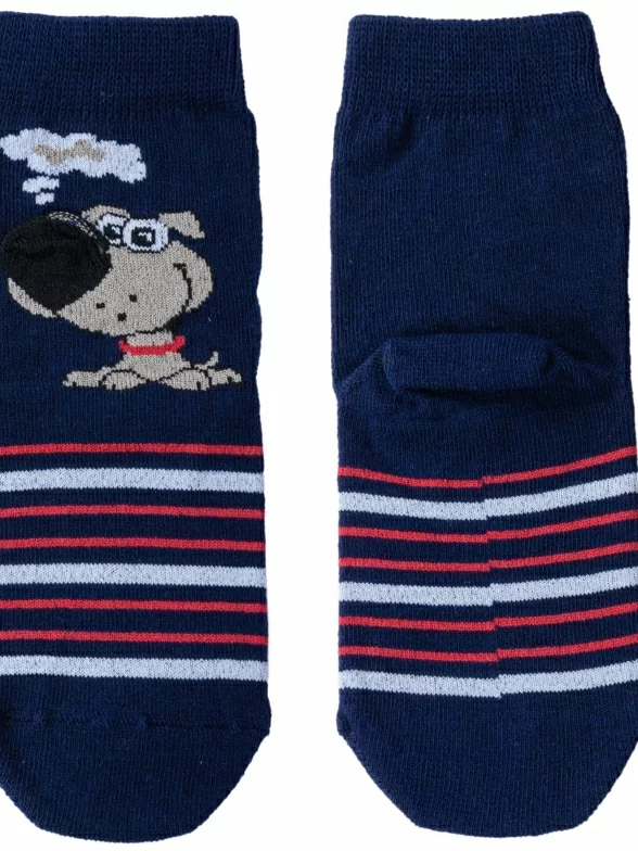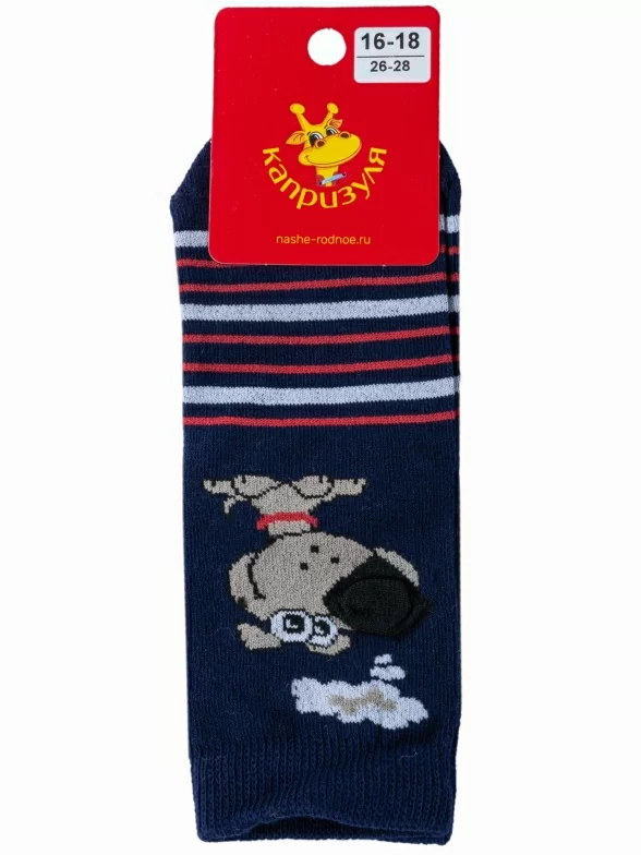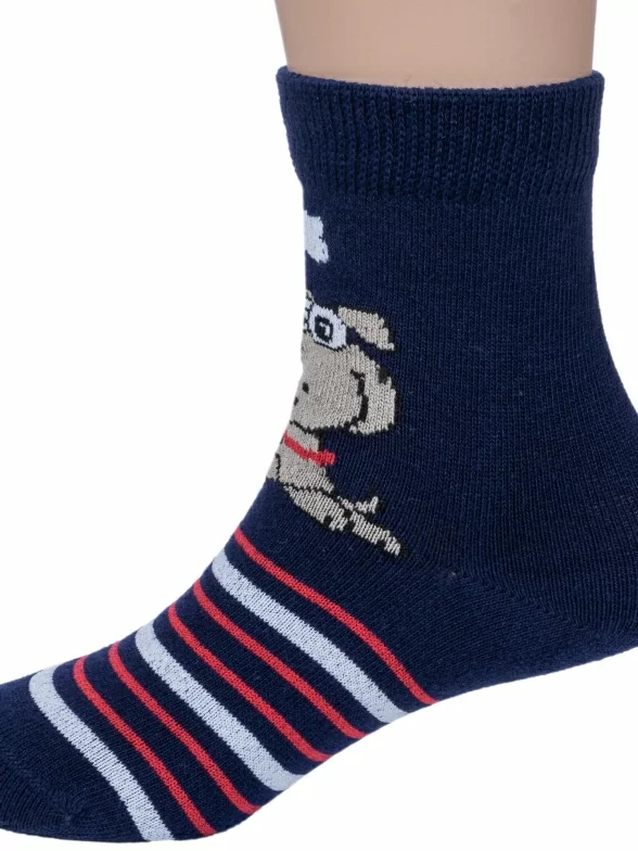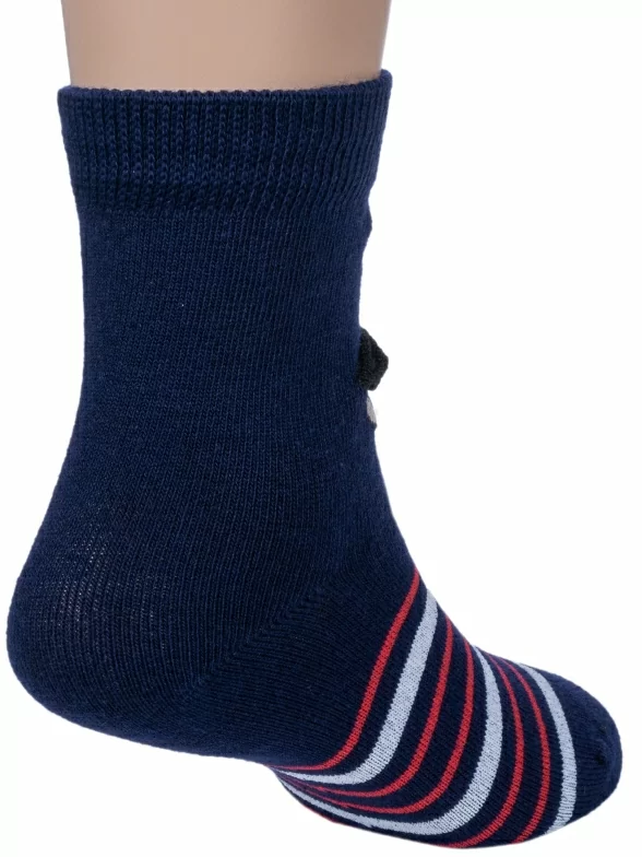 Круглогодичные укороченные детские носки, цвет темно-синий, необычные, повседневные, шов обычный (не бесшовные), принт (рисунок): животные, с узором, крупные контрастные рисунки, состав: 60% хлопок, 18% полиамид, 20% полипропилен, 2% эластан, арт. 222С11. Производитель «Смоленская чулочная фабрика, Россия» под брендом «Наше смоленской чулочной фабрики».