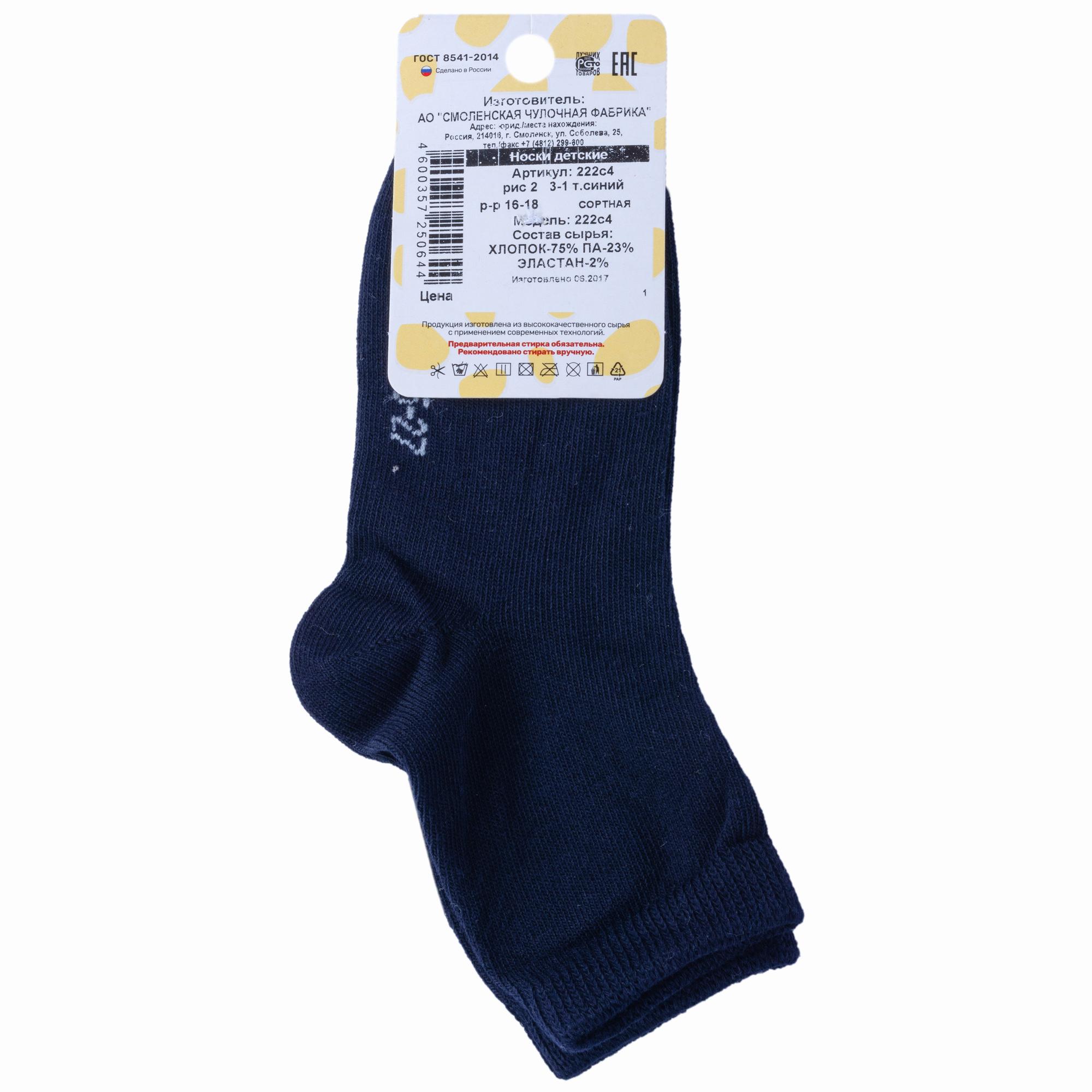 Круглогодичные укороченные детские носки, цвет темно-синий, классические, шов обычный (не бесшовные), принт (рисунок): однотонный, небольшой рисунок, состав: 75% хлопок, 23% полиамид, 2% эластан, арт. 222С4. Производитель «Смоленская чулочная фабрика, Россия» под брендом «Наше смоленской чулочной фабрики».