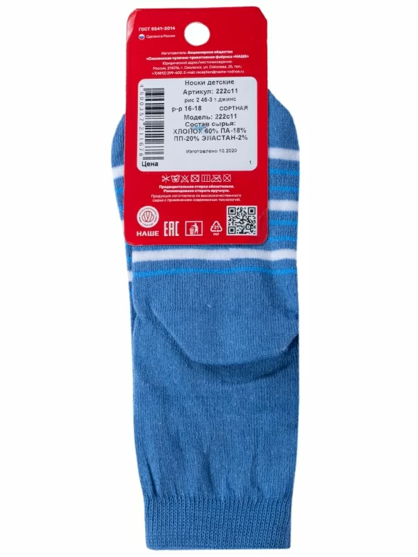 Детские носки "НАШЕ" Смоленской чулочной фабрики, 222С11, рис. 2, ТЕМНО-ДЖИНСОВЫЕ №46-3