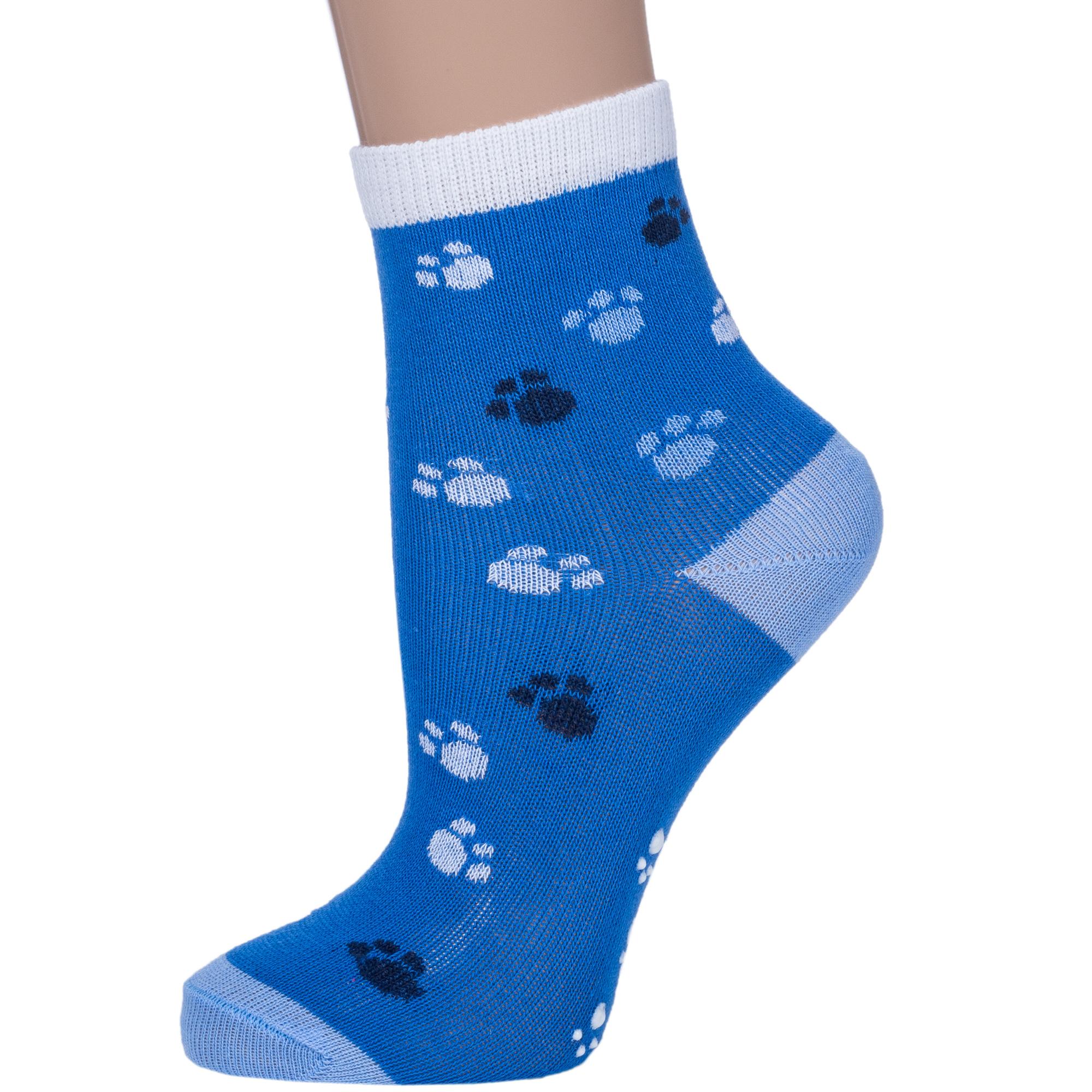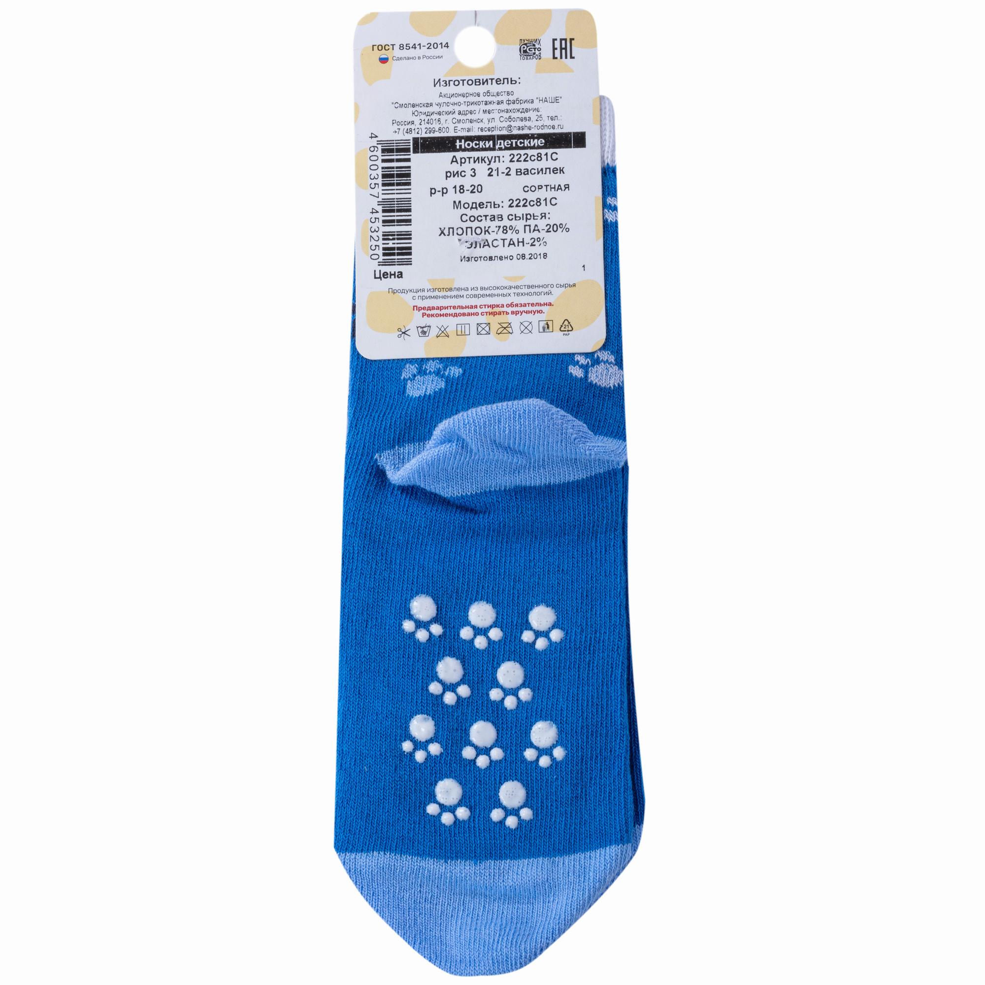 Круглогодичные укороченные детские носки, цвет синий, с нескользящей стопой, необычные, повседневные, шов обычный (не бесшовные), принт (рисунок): животные, с узором, состав: 78% хлопок, 20% полиамид, 2% эластан, арт. 222С81С. Производитель «Смоленская чулочная фабрика, Россия» под брендом «Наше смоленской чулочной фабрики».