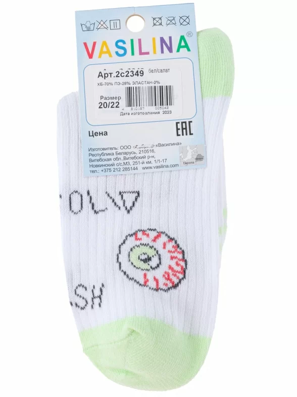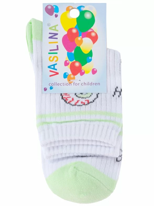 Детские носки VASILINA, 2С2349, БЕЛО-САЛАТОВЫЕ