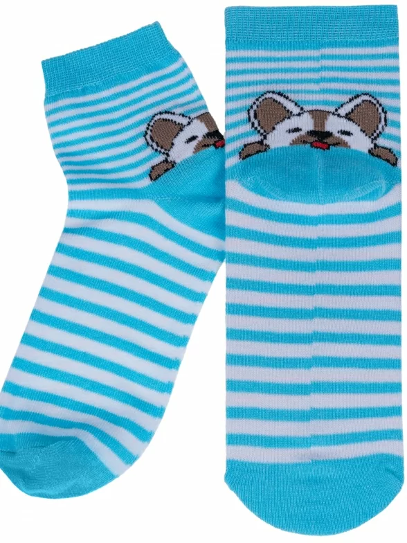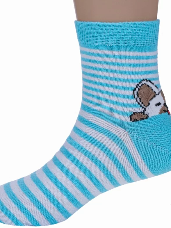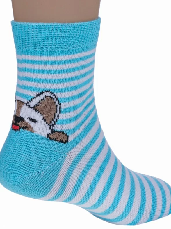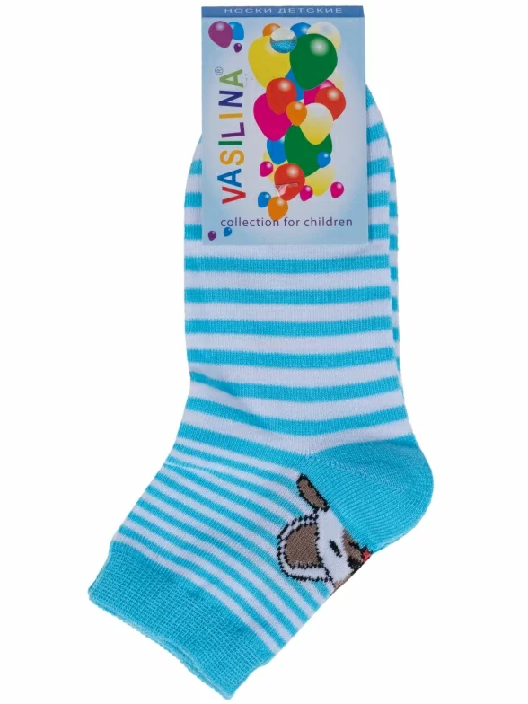 Круглогодичные короткие детские носки, цвет бирюзовый, повседневные, шов обычный (не бесшовные), принт (рисунок): животные, с узором, состав: 70% хлопок, 28% полиэстер, 2% эластан, арт. 0С2342. Производитель «ООО Фабрика Василина, Беларусь» под брендом «Vasilina».