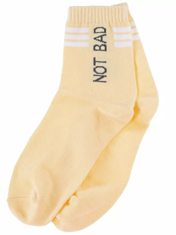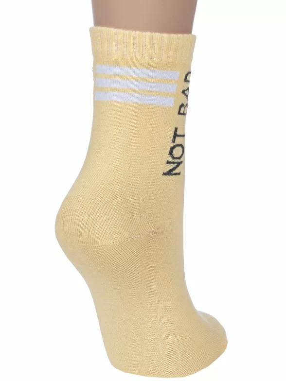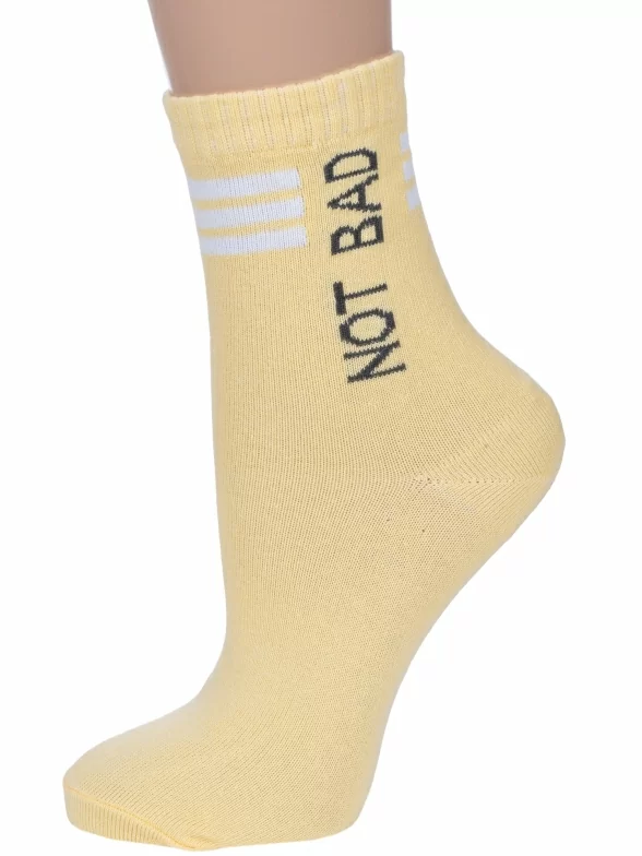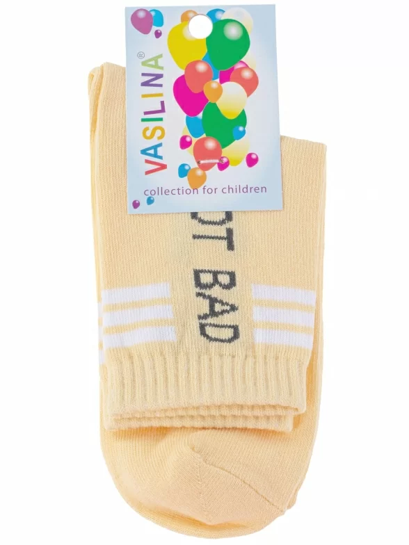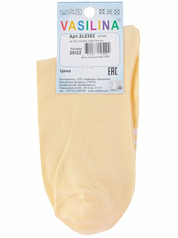 Круглогодичные укороченные детские носки, цвет желтый, повседневные, шов обычный (не бесшовные), принт (рисунок): надписи, с узором, состав: 70% хлопок, 28% полиэстер, 2% эластан, арт. 2С2352. Производитель «ООО Фабрика Василина, Беларусь» под брендом «Vasilina».